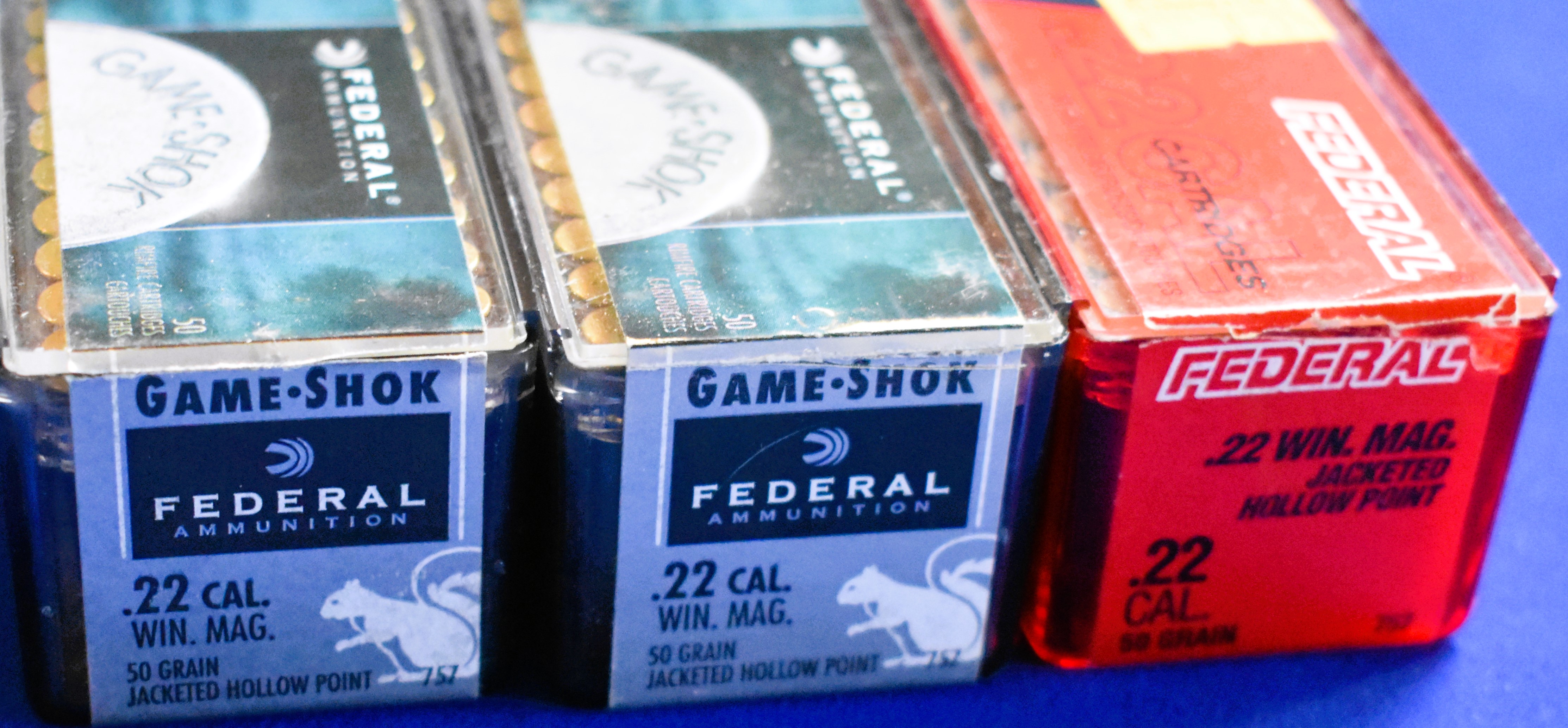 Factory New Old Stock- 300 Rounds (6 Boxes) as follows: 2 boxes of Game-Shok 22 Win Mag 50 Grain Jacketed Hollow Point; 1 box of 22 Win. Mag. 50 grain Jacketed Hollow Point Rimfire; 3 boxes of Premium 22 Win Mag. 30 grain (1) box is Sierra Jacketed Hollow Point, the other (2) are Speer TNT Hollow Point; Shipping ONLY UPS GROUND due to regulations.