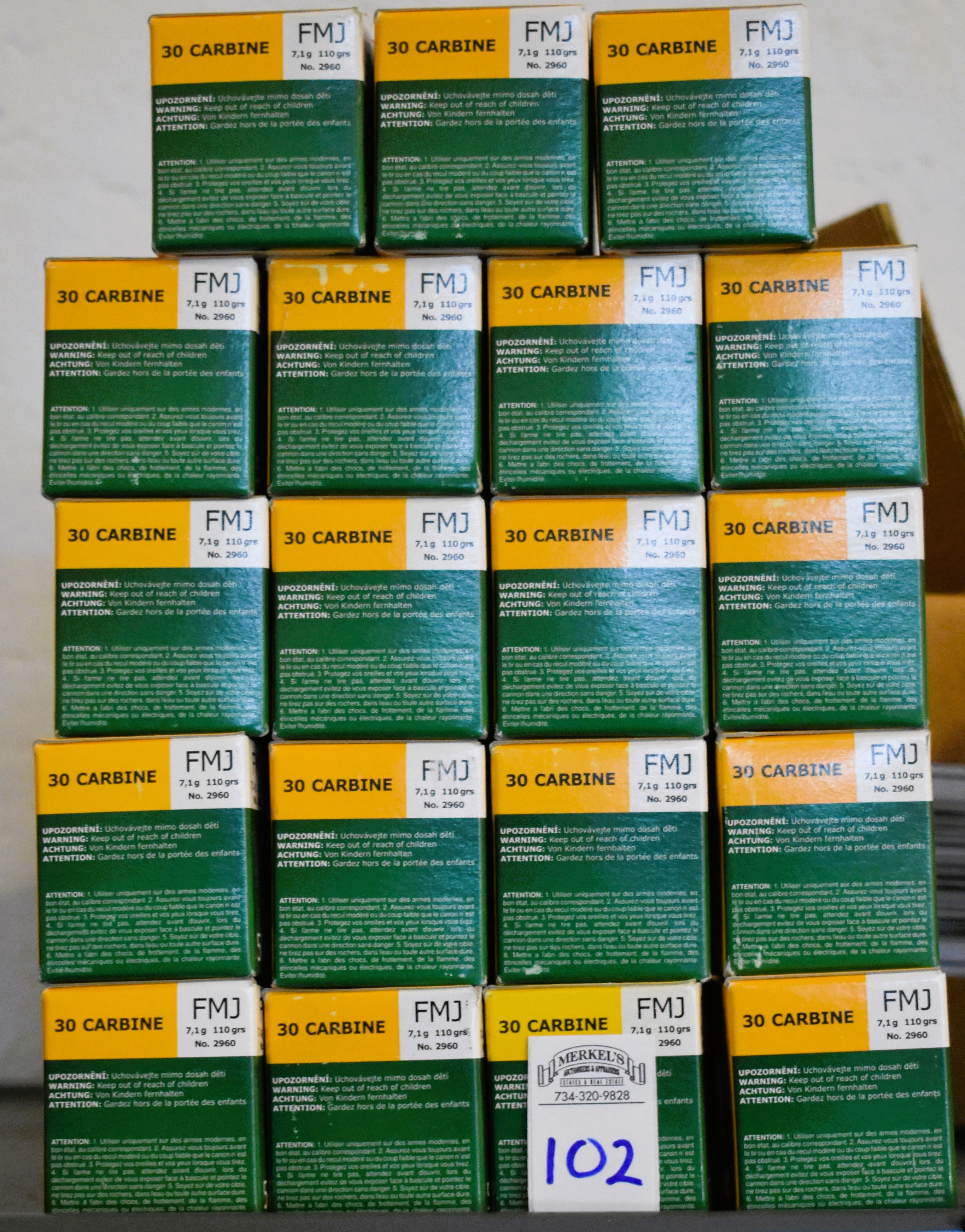Factory New Old Stock -950 Rounds (19 Boxes) Sellier & Bellot, 30 Carbine, 110 gr. FMJ. Shipping ONLY UPS GROUND due to regulations.
