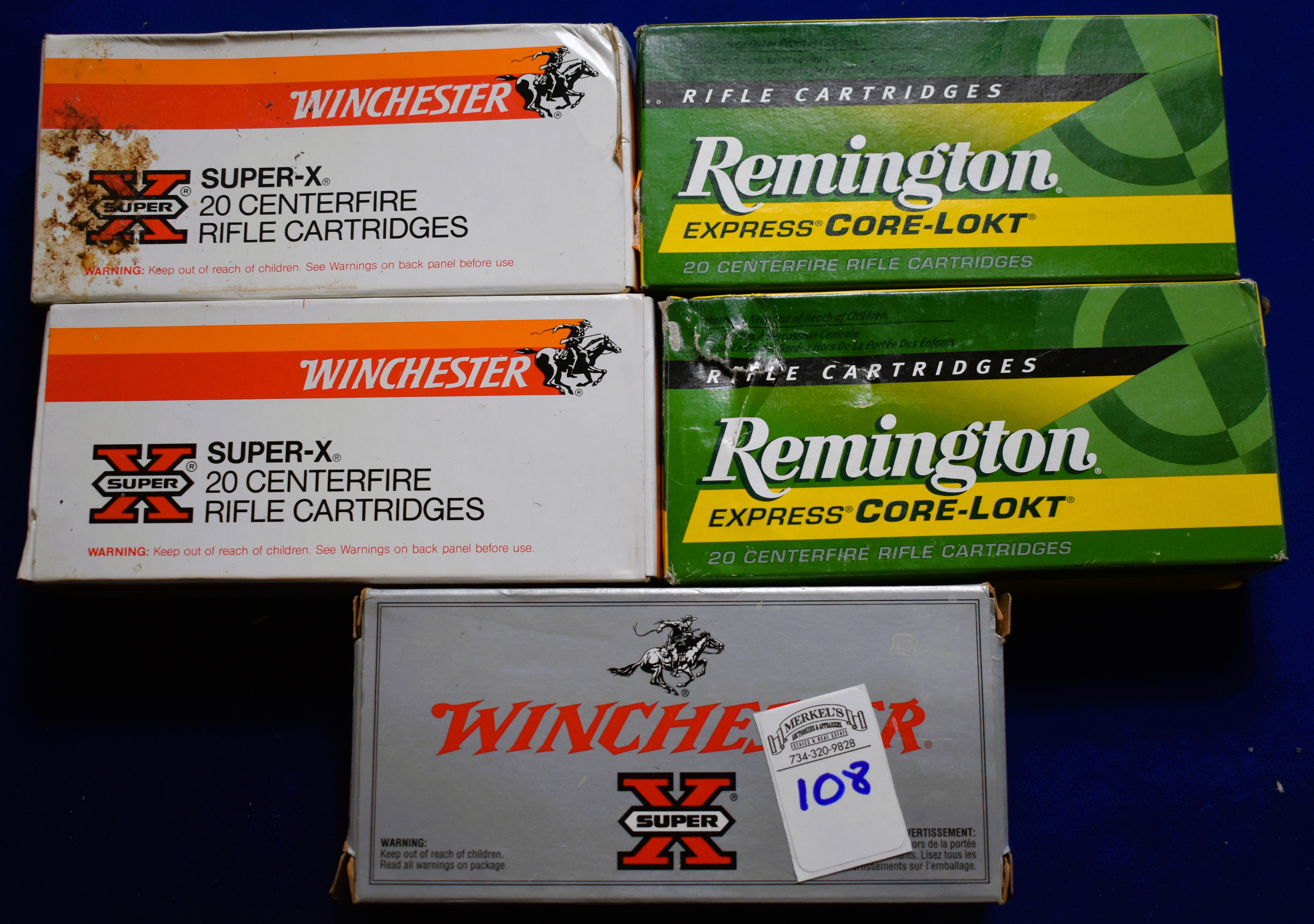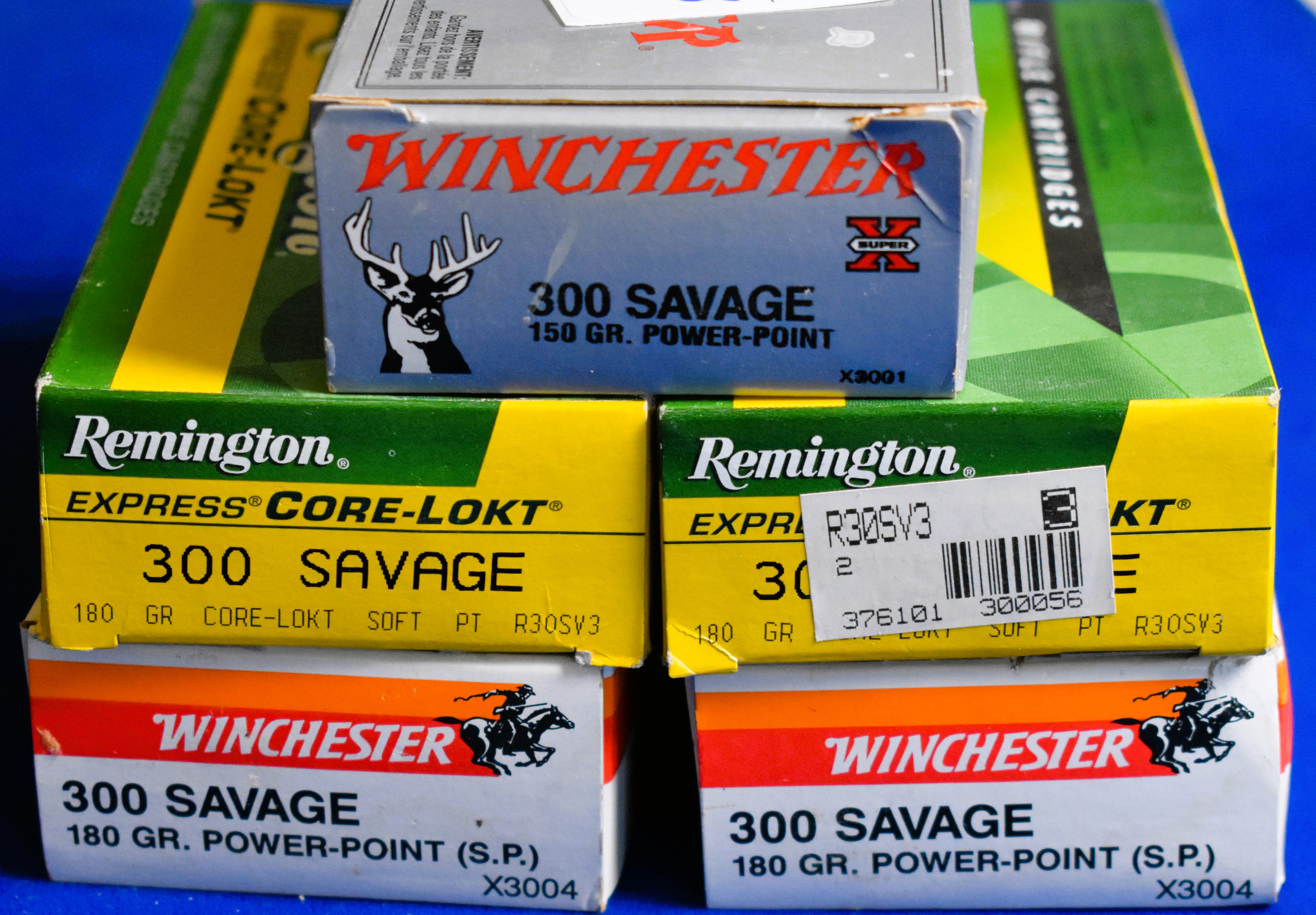 Factory New Old Stock -100 Rounds (5 Boxes) Various Manufacturers of 300 Savage – please see pictures for mfg. and quantity of boxes. Shipping ONLY UPS GROUND due to regulations. These are 20 Round boxes.