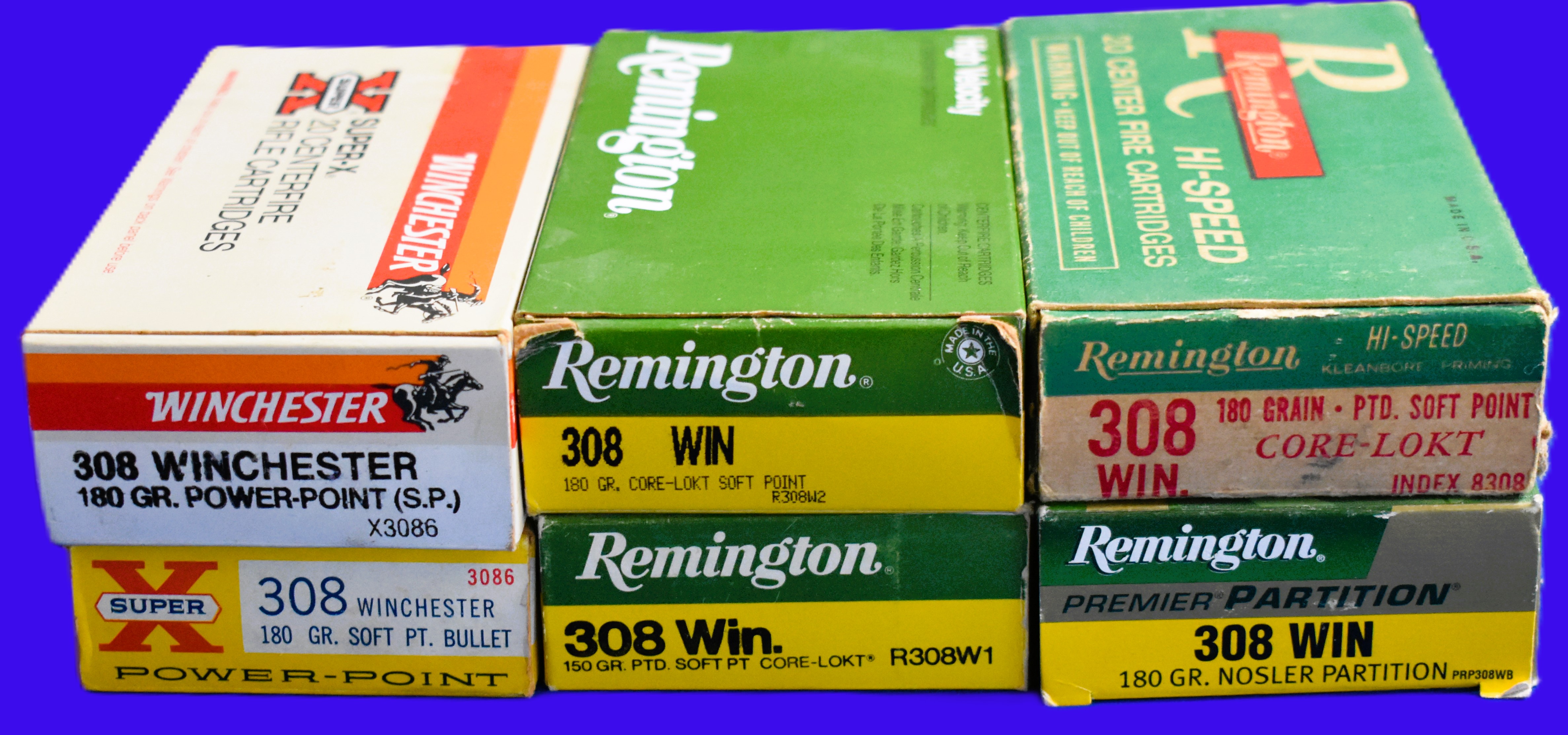 Factory New Old Stock -100 Rounds (5 Boxes) 1 box – Winchester Super X 308 Win. 180 gr. Power-Point S.P. 1 box – Western Super X 308 Win. 180 gr. Soft point. 3 boxes – Remington 308 Win. 180 gr. core-Lokt soft point. Shipping ONLY UPS GROUND due to regulations. These are 20 Round boxes.