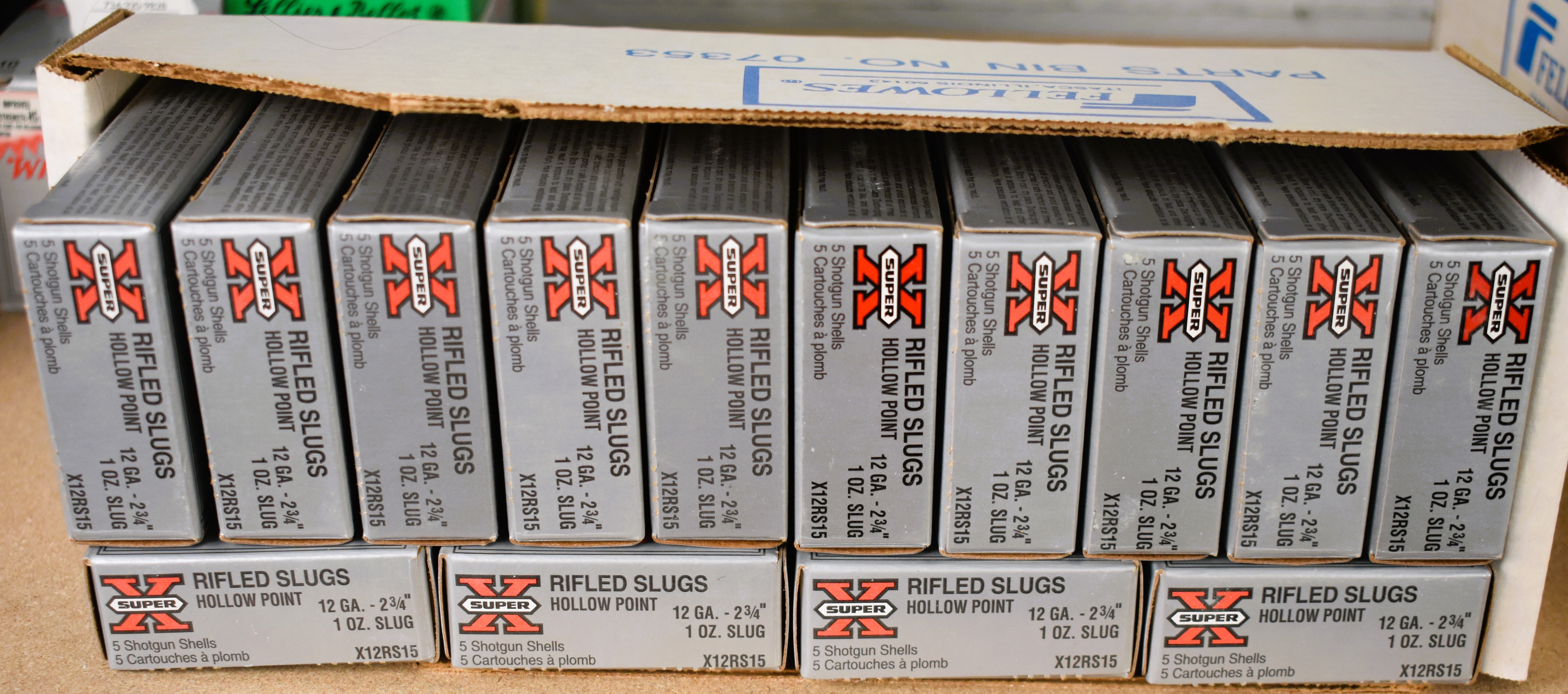 Factory New Old Stock –70 rounds (14 Boxes), Winchester Super X 12 GA. 2 3/4″ 1 oz. slug. Rifled slugs with HP. Shipping ONLY UPS GROUND due to regulations.