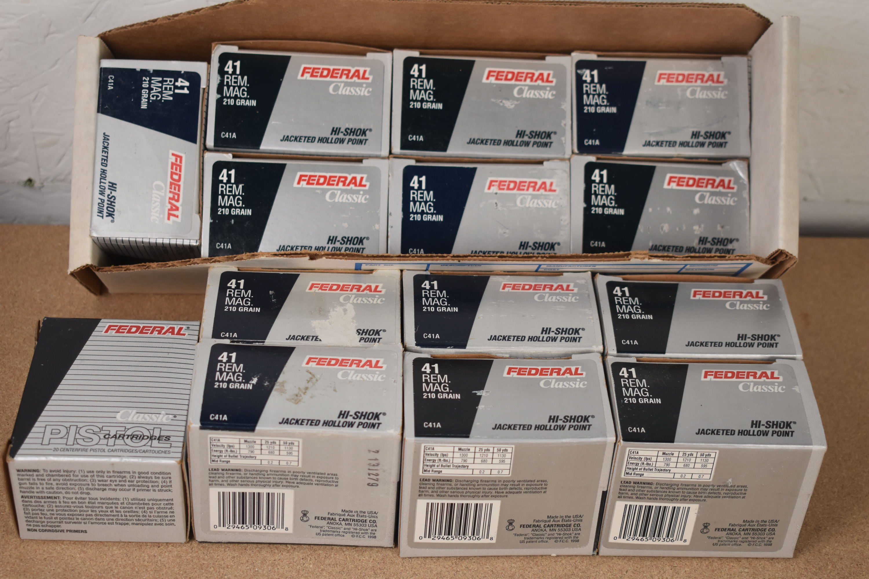 Factory New Old Stock – 280 Rounds (14 Boxes) Federal Classic 41 Rem. Mag. 210 gr. “Hi-Shok” JHP Shipping ONLY UPS GROUND due to regulations.