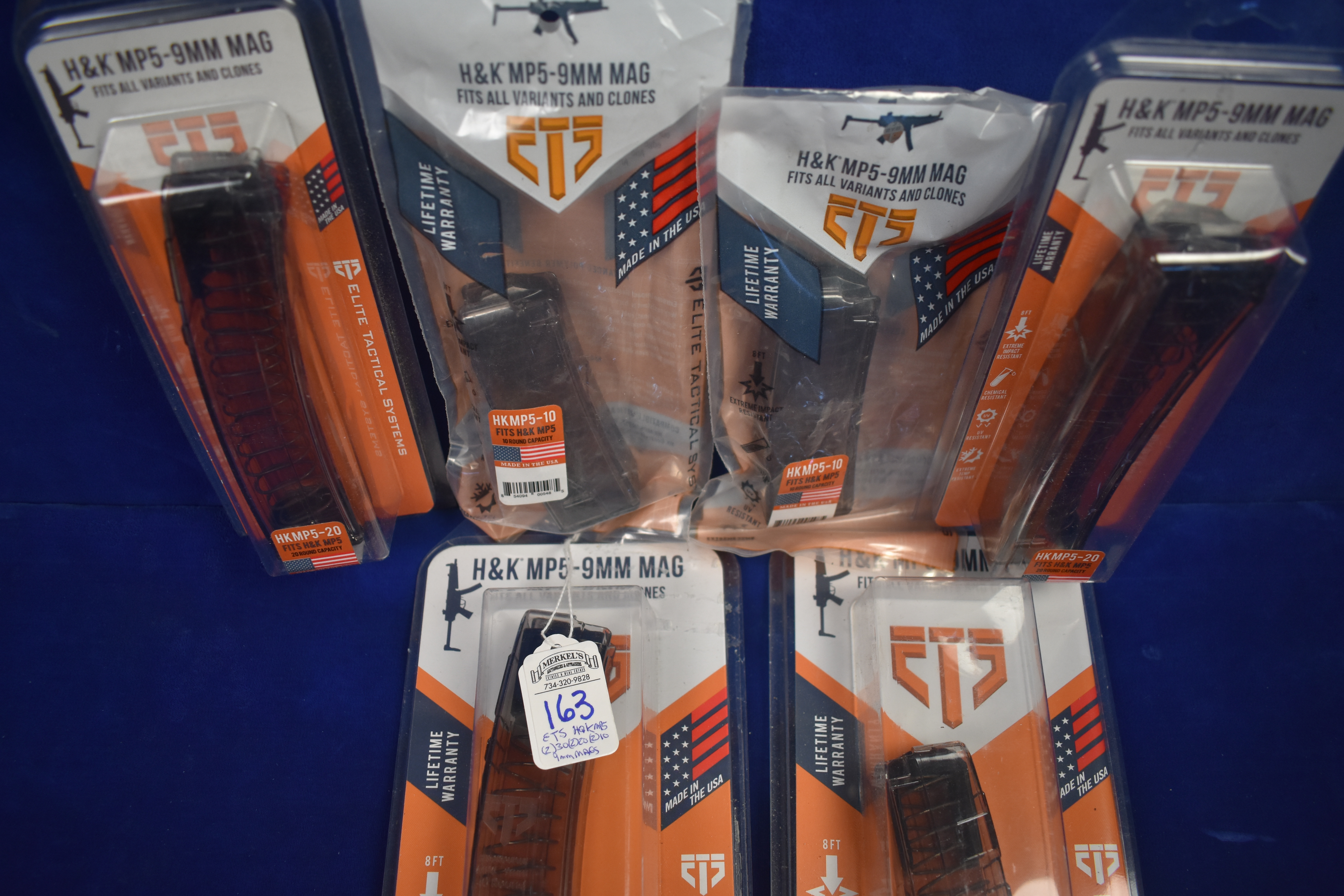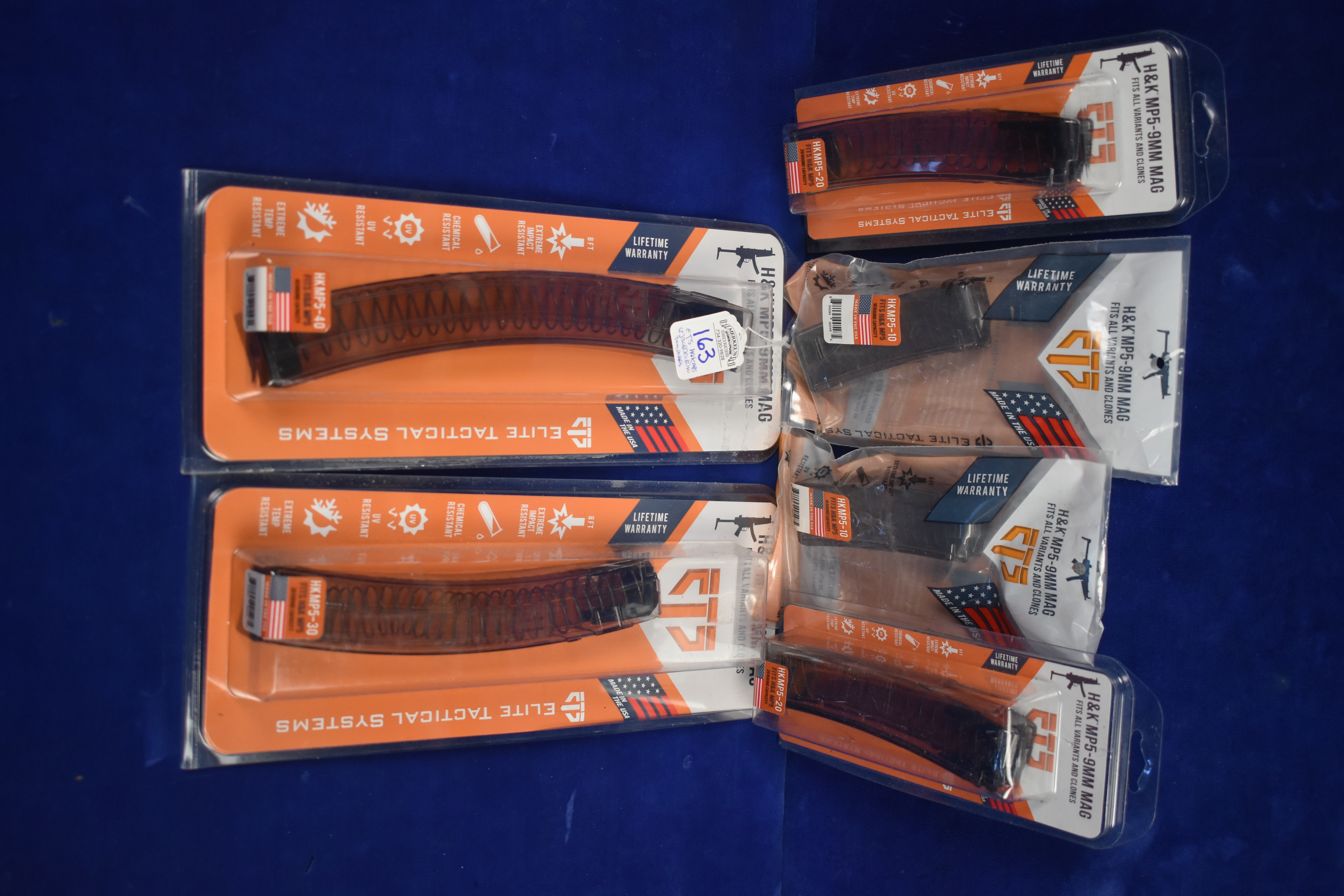 Factory New Old Stock – 6 packages of Elite Tactical Systems: H & K MP5 – 9 MM Mags – 2 Mags/10 rounds, 2 Mags/20 rounds and 2 Mags/30 rounds.