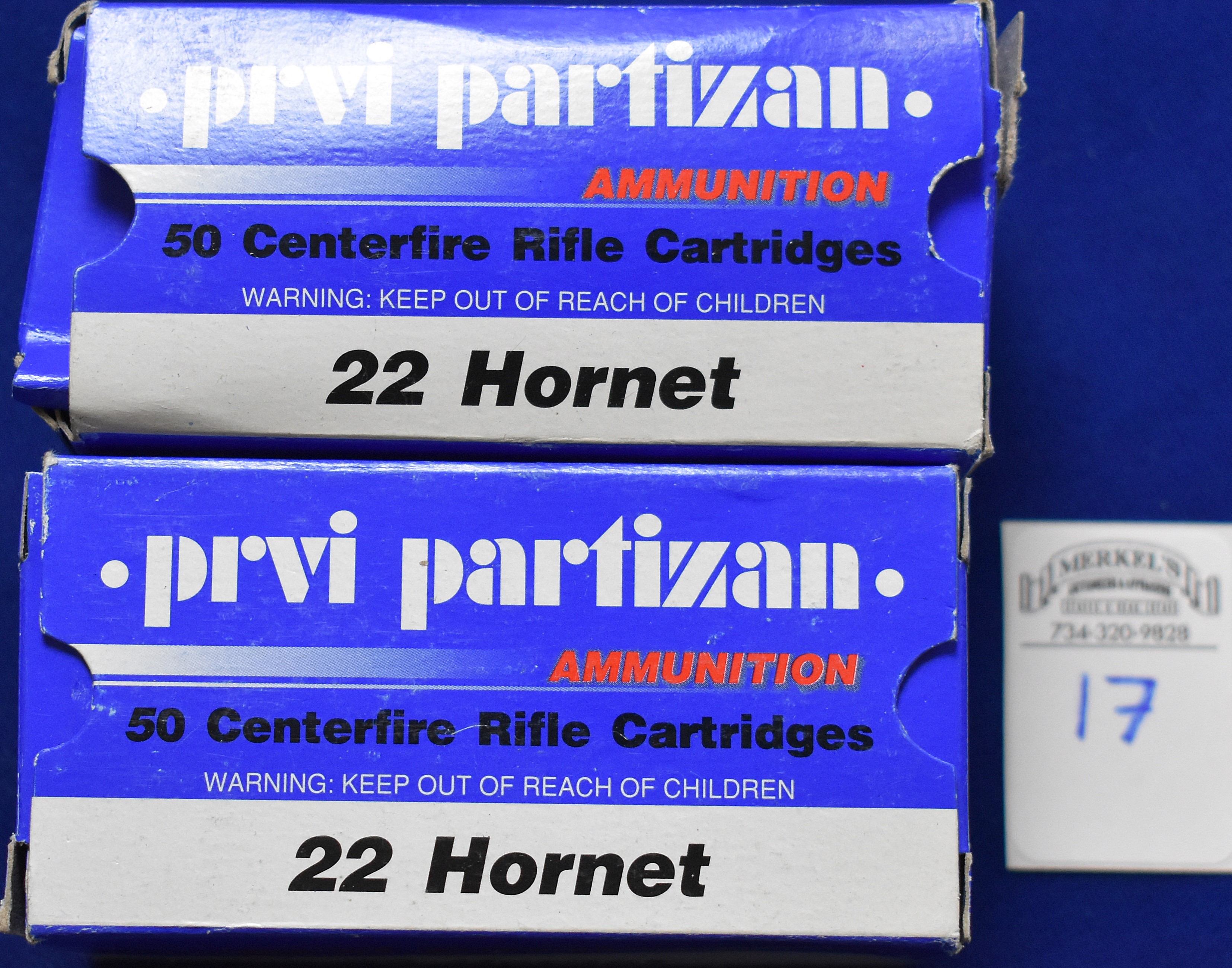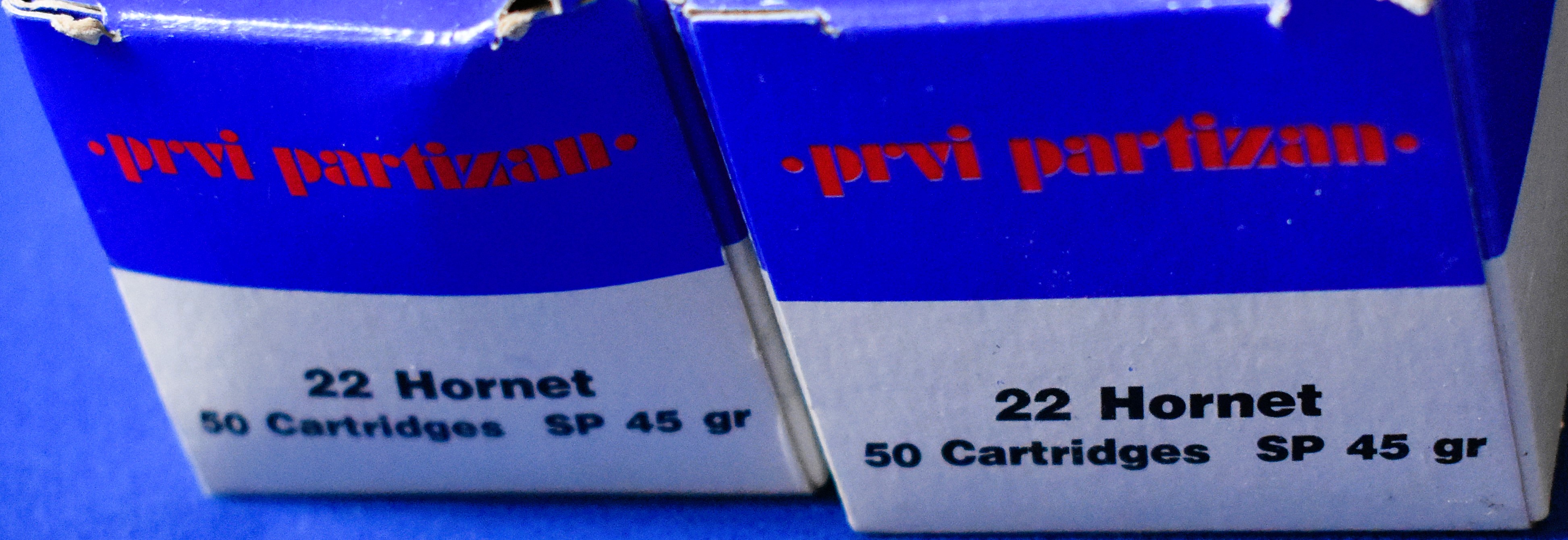 Factory New Old Stock- 100 Rounds (2 Boxes) Prvi Partizan 22 Hornet sp 45 gr, Shipping ONLY UPS GROUND due to regulations.