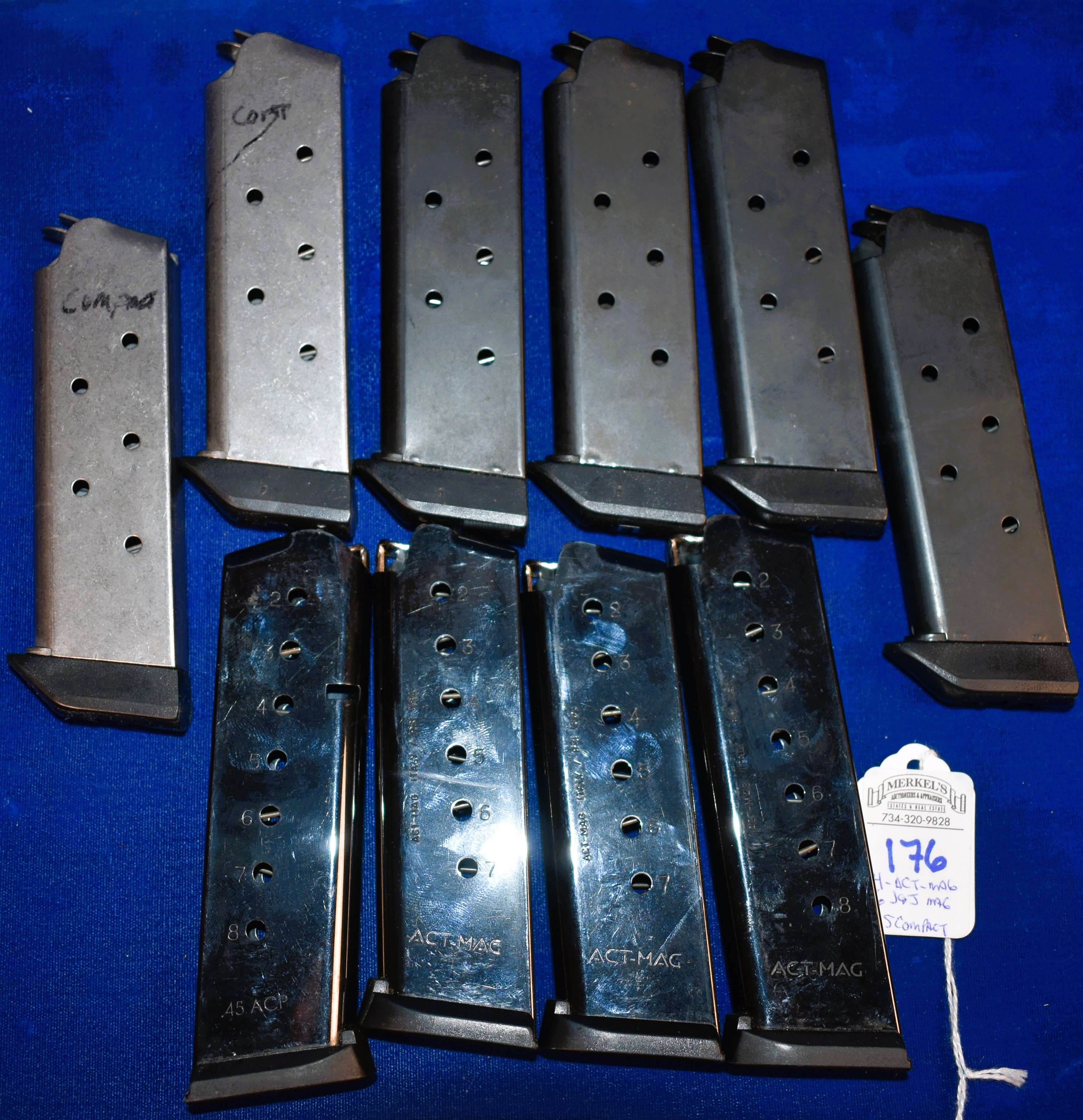 Factory New Old Stock – Lot of 10 45 Combat Mags. 4 ACT Mags – 8 rounds and 6 J & J mags – 7 rounds.