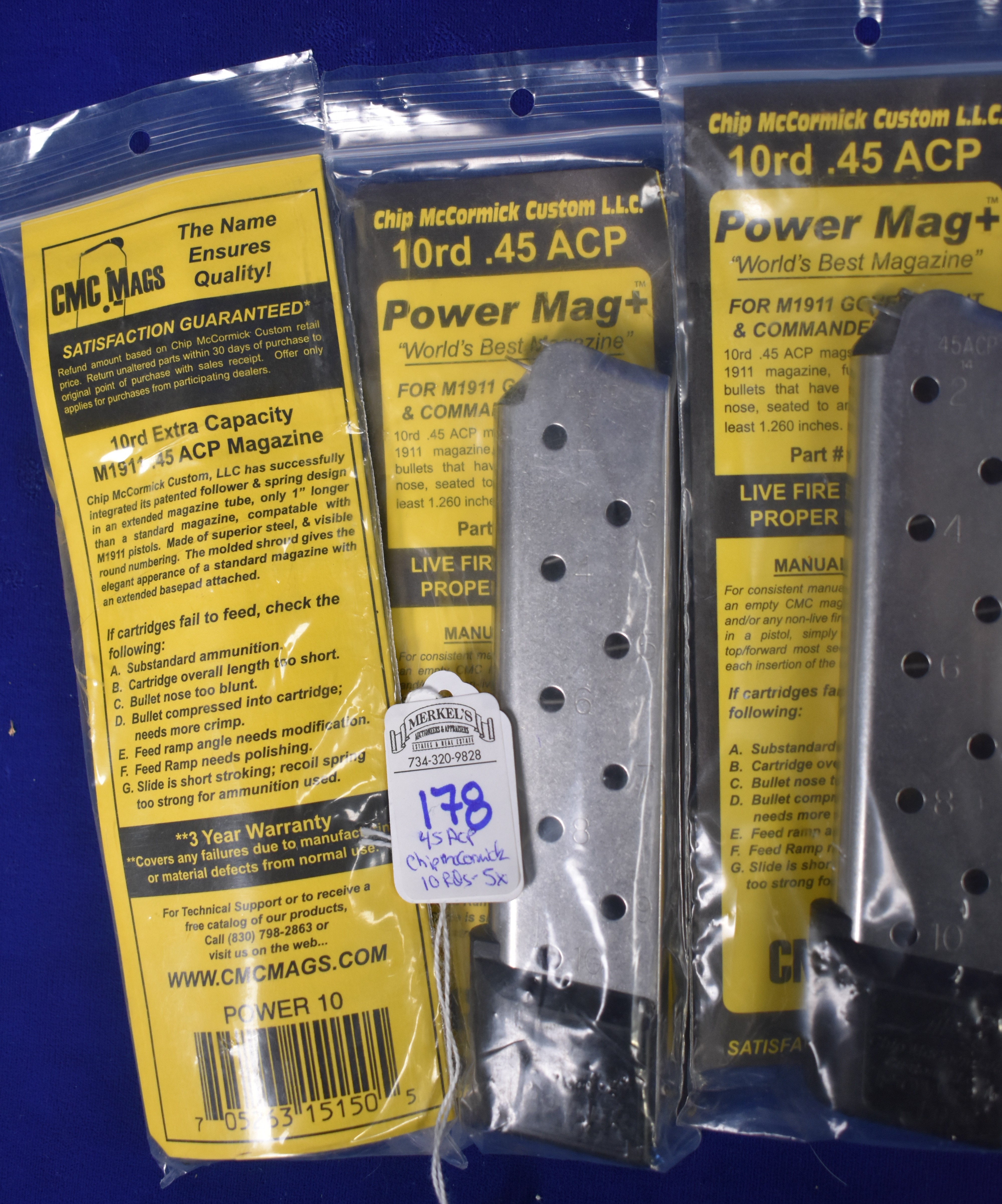 Factory New Old Stock – Lot of 5 Chip McCormick Custom Mags. 45 ACP 10rd Power Mag +. All 10 Round Mags.