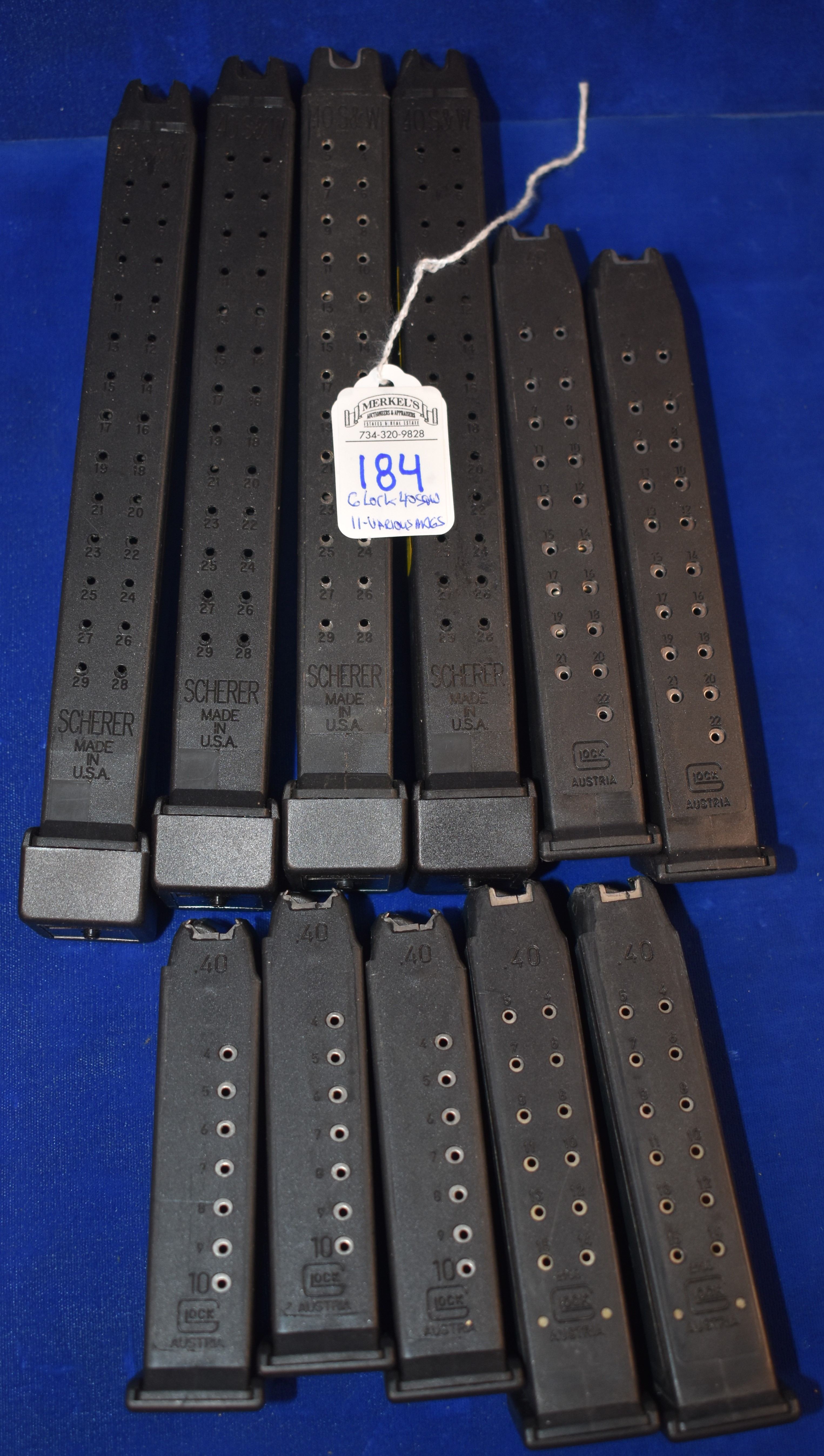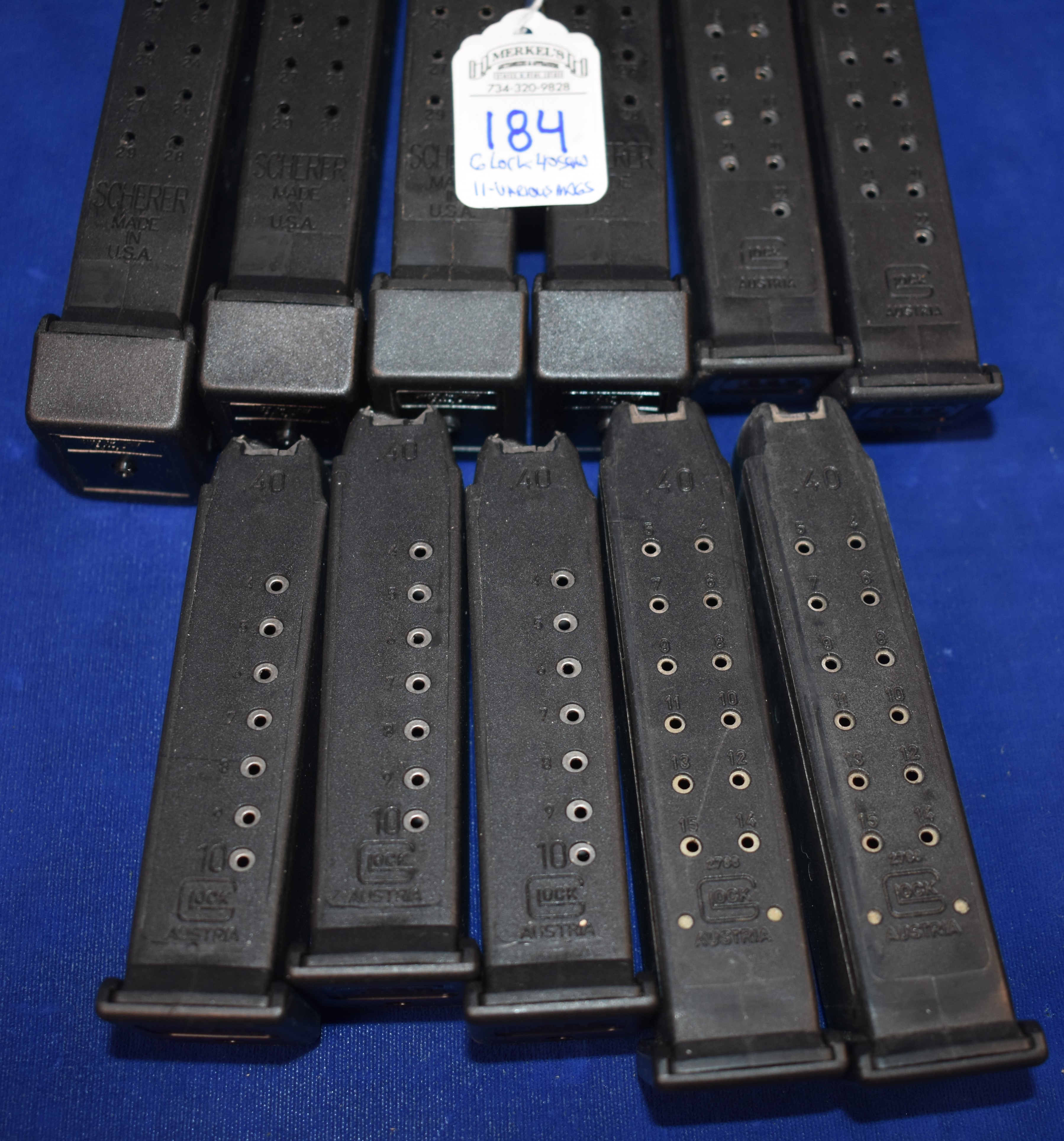 Factory New Old Stock – Lot of 11 Various Glock 40 S & W Mags. 4 – 29 Round – Scherer, 2 – 22 Round – Glock, 2 – 15 Round Glock and 3 – 10 Round Glock.
