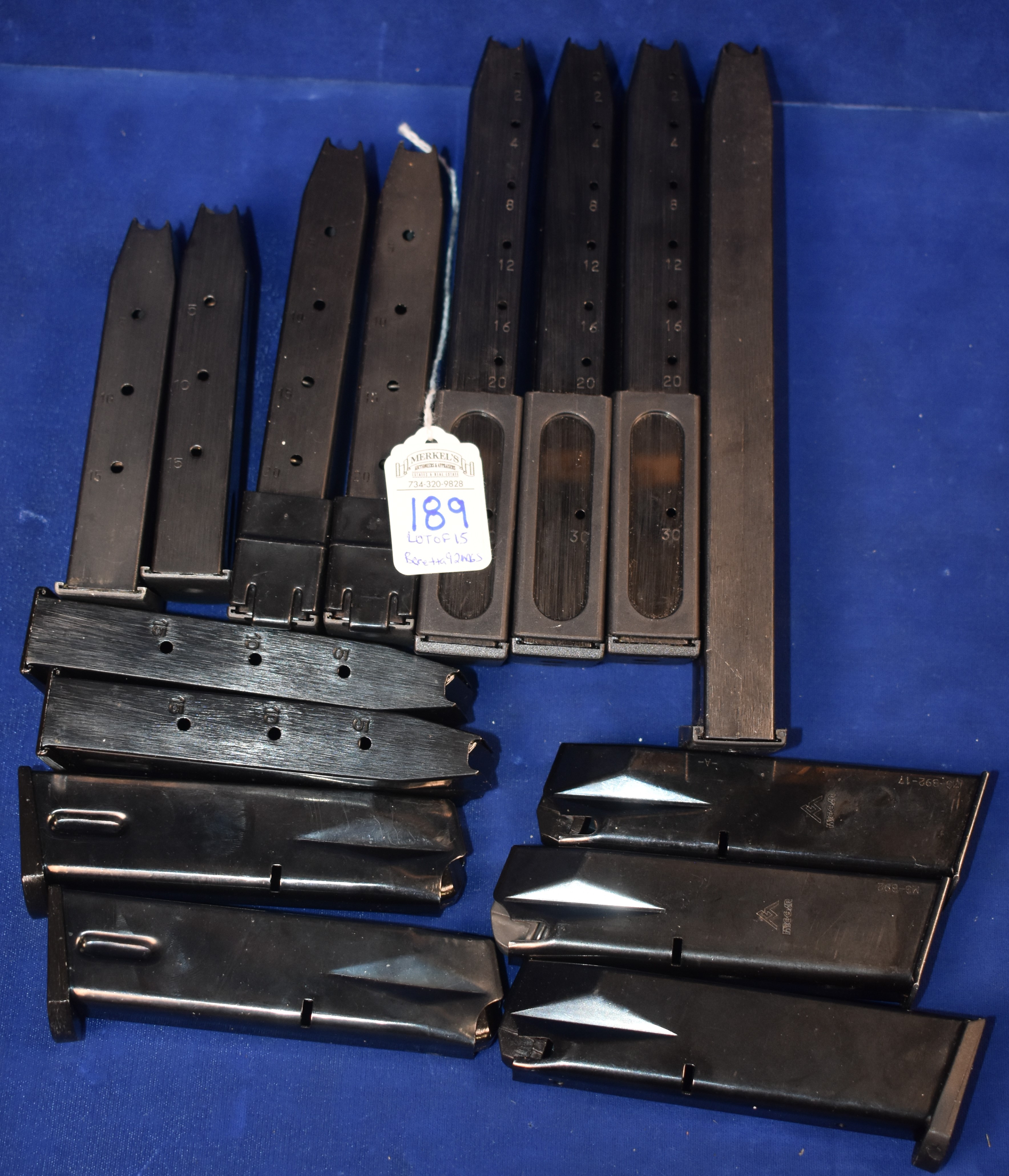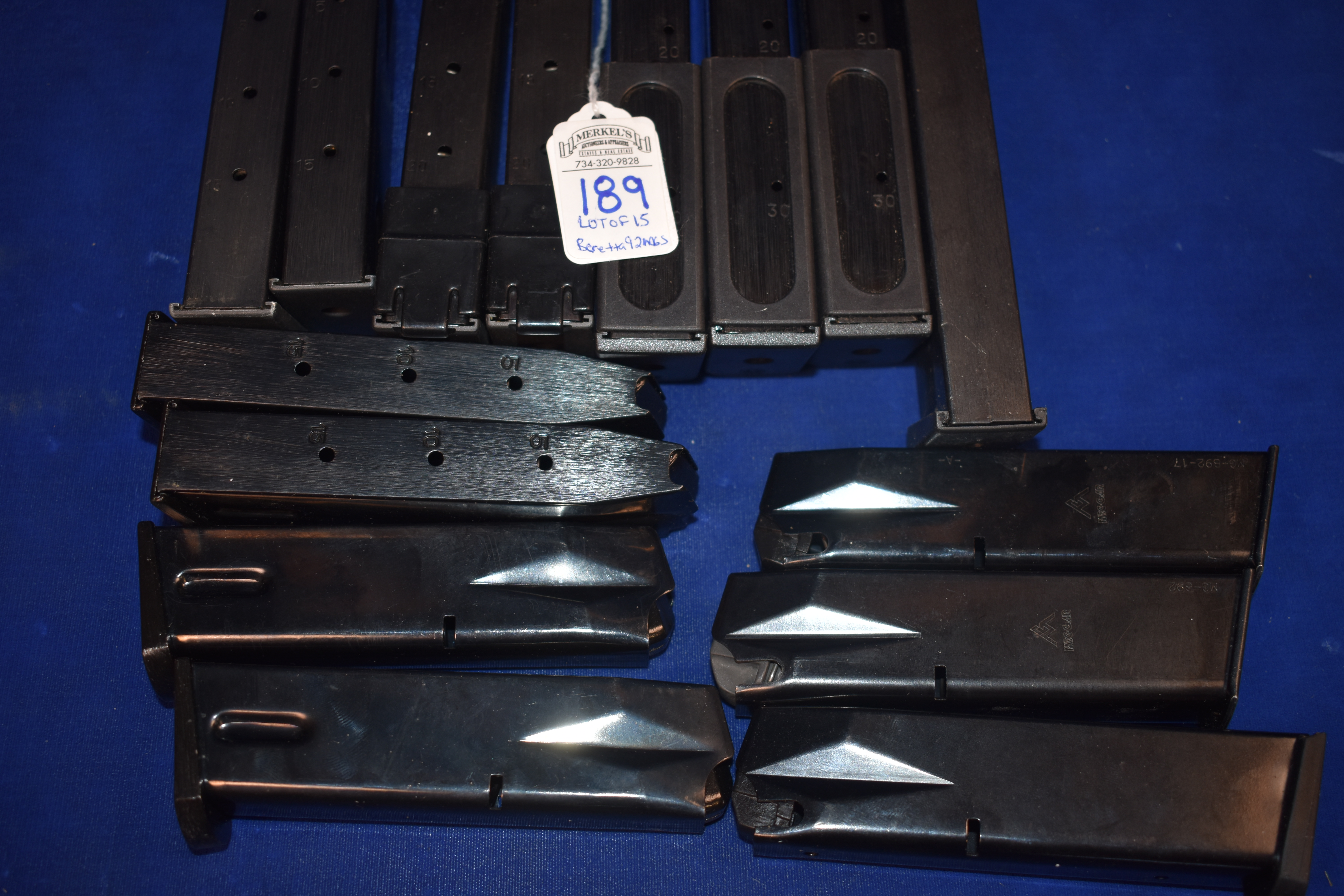 Factory New Old Stock – Lot of 15 Beretta 92 9 MM Mags. 4 Mags – 30 Rounds, 2 Mags – 20 Rounds, 3 Mags – 17 Rounds, and 6 Mags – 15 Rounds.