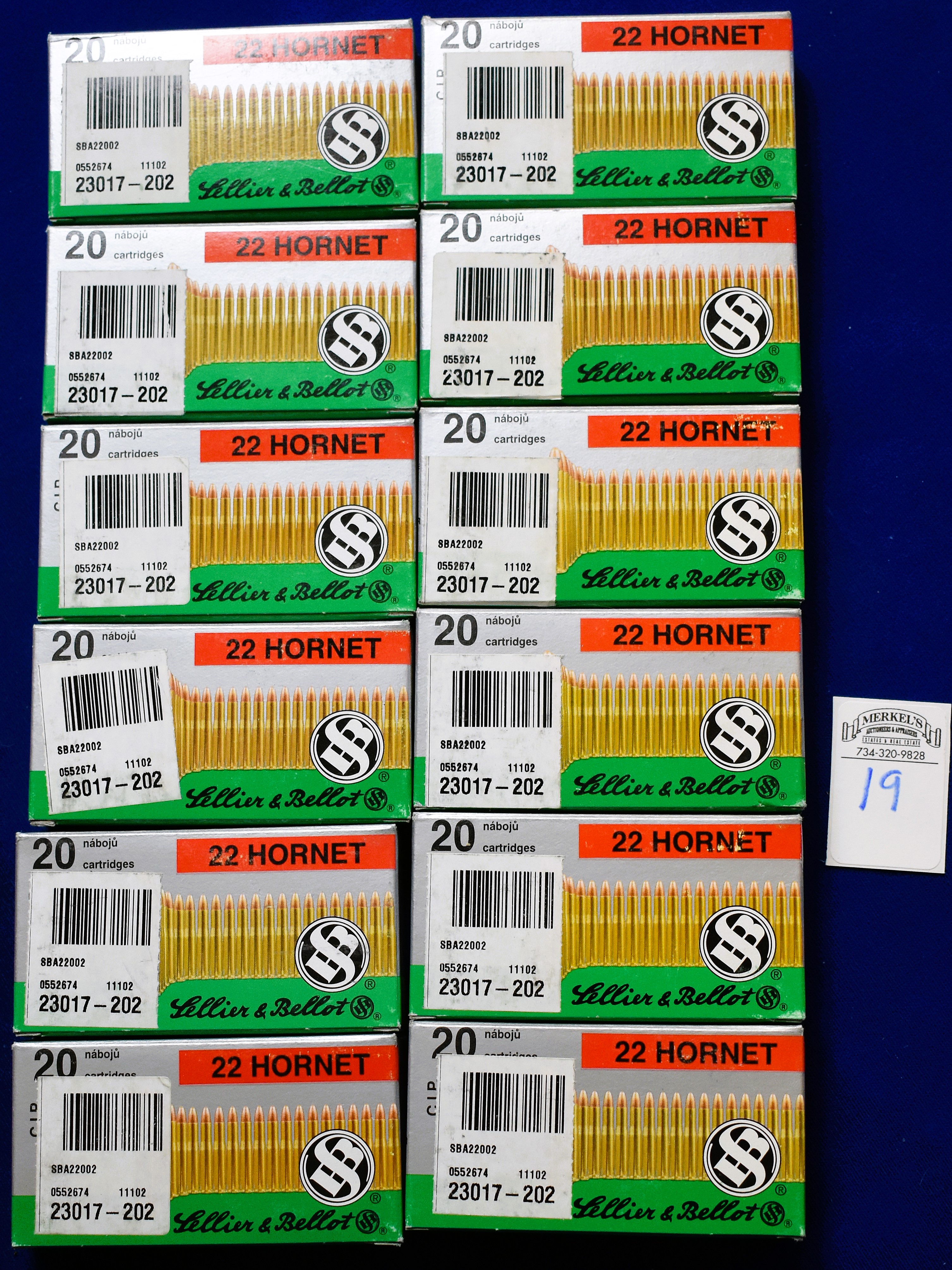 Factory New Old Stock- 240 Rounds (12 Boxes) Sellier & Bellot 22 Hornet 45 gr, Shipping ONLY UPS GROUND due to regulations.