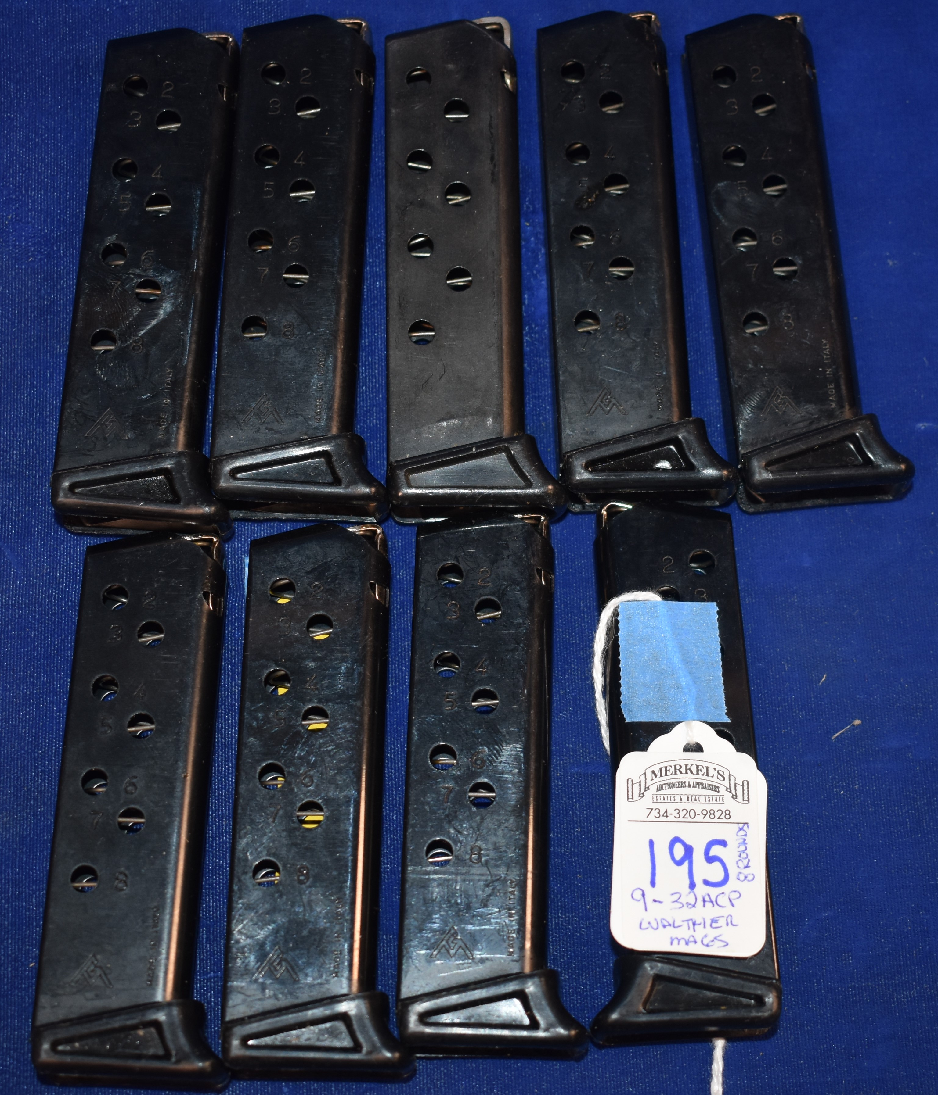 Lot of 9 32 ACP Walther Mags. MEC-GAR made in Italy. All Mags 8 Rounds.