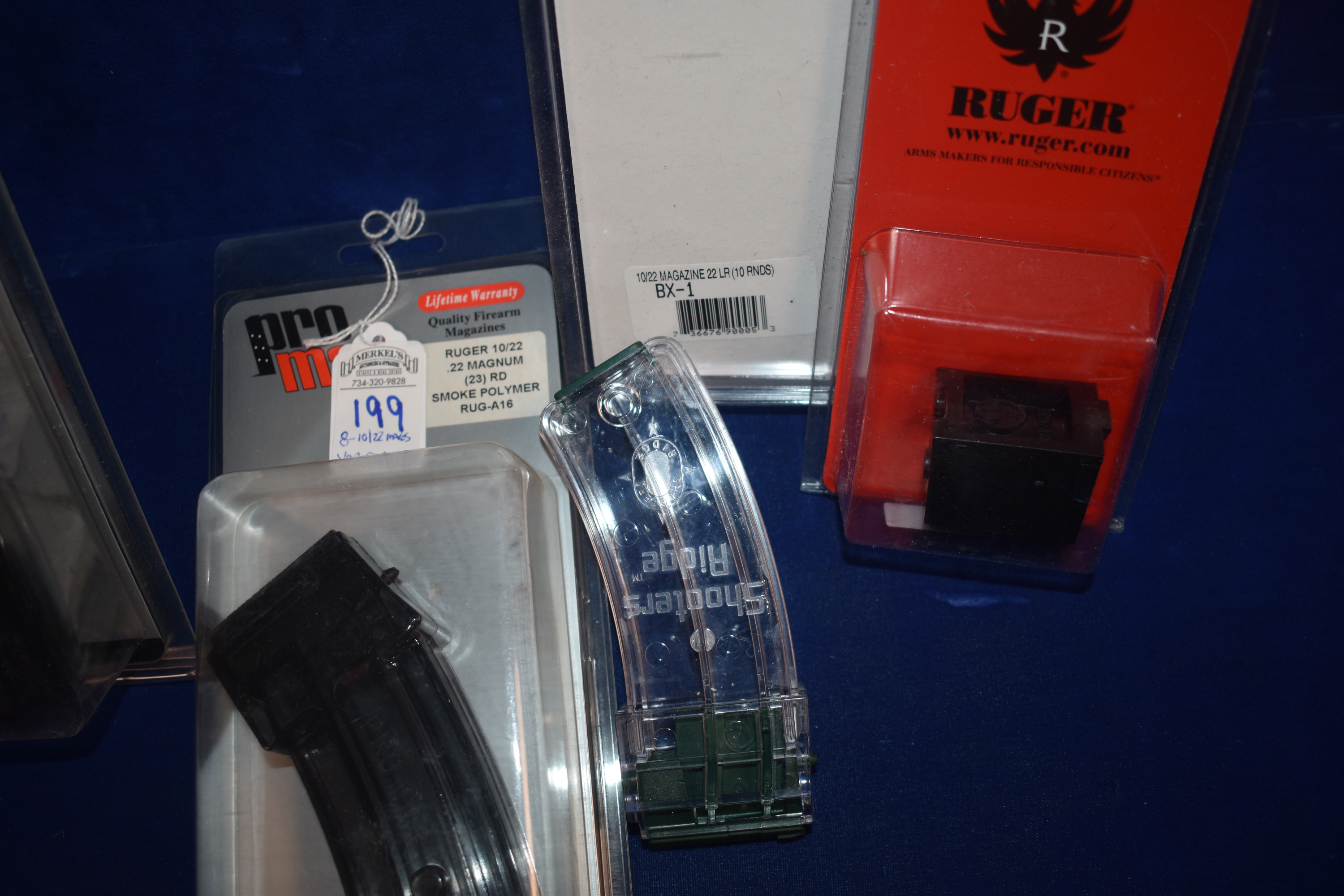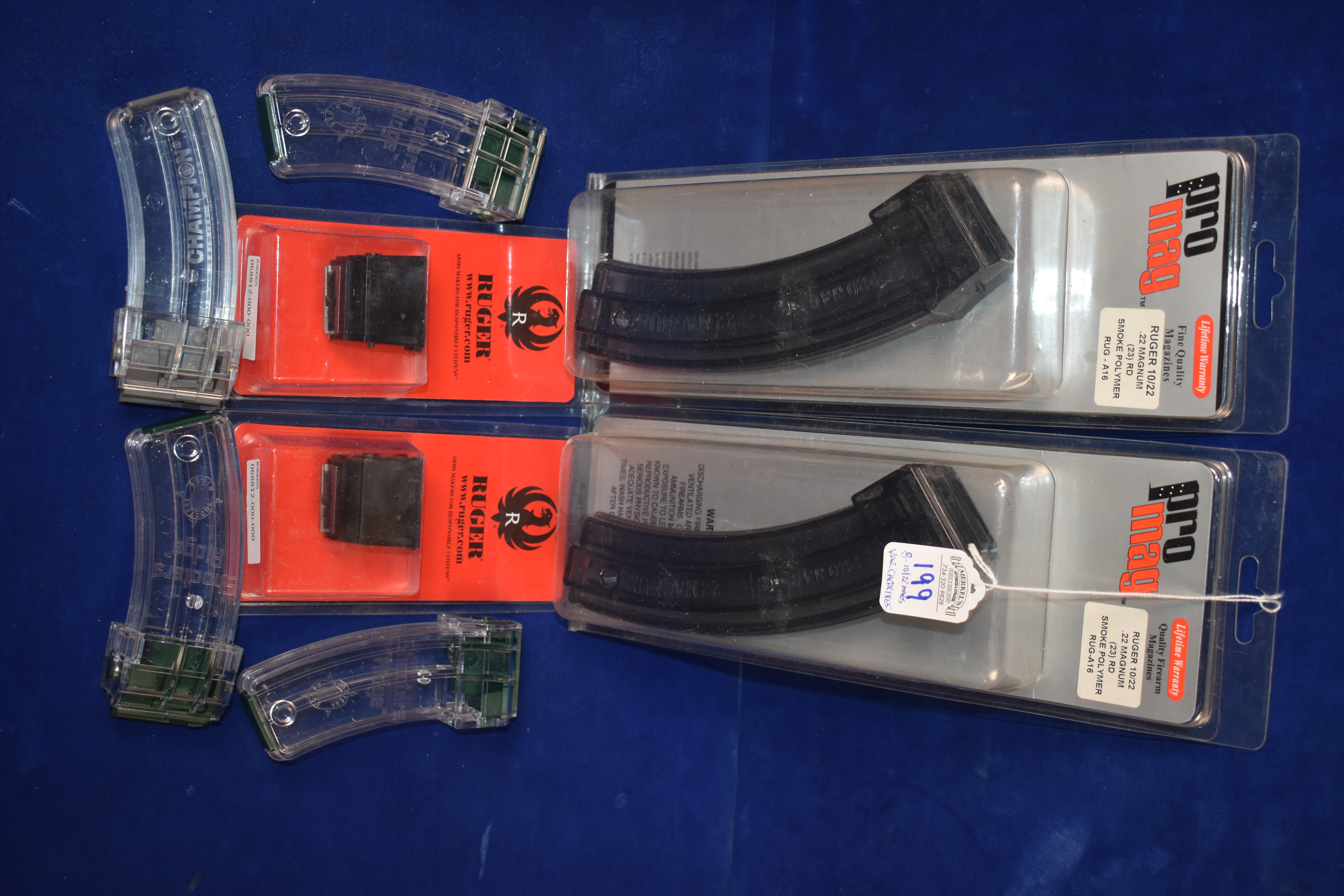 Factory New Old Stock – Lot of 8 – Various 10/22 Mags. As Follows: 2 – 22 LR Ruger Rotary 10 Rounds, 2 – 22 Magnum Pro-Mag 23 Rounds, 4 – 22 WMR/17HMR Shooter Ridge 25 Rounds.
