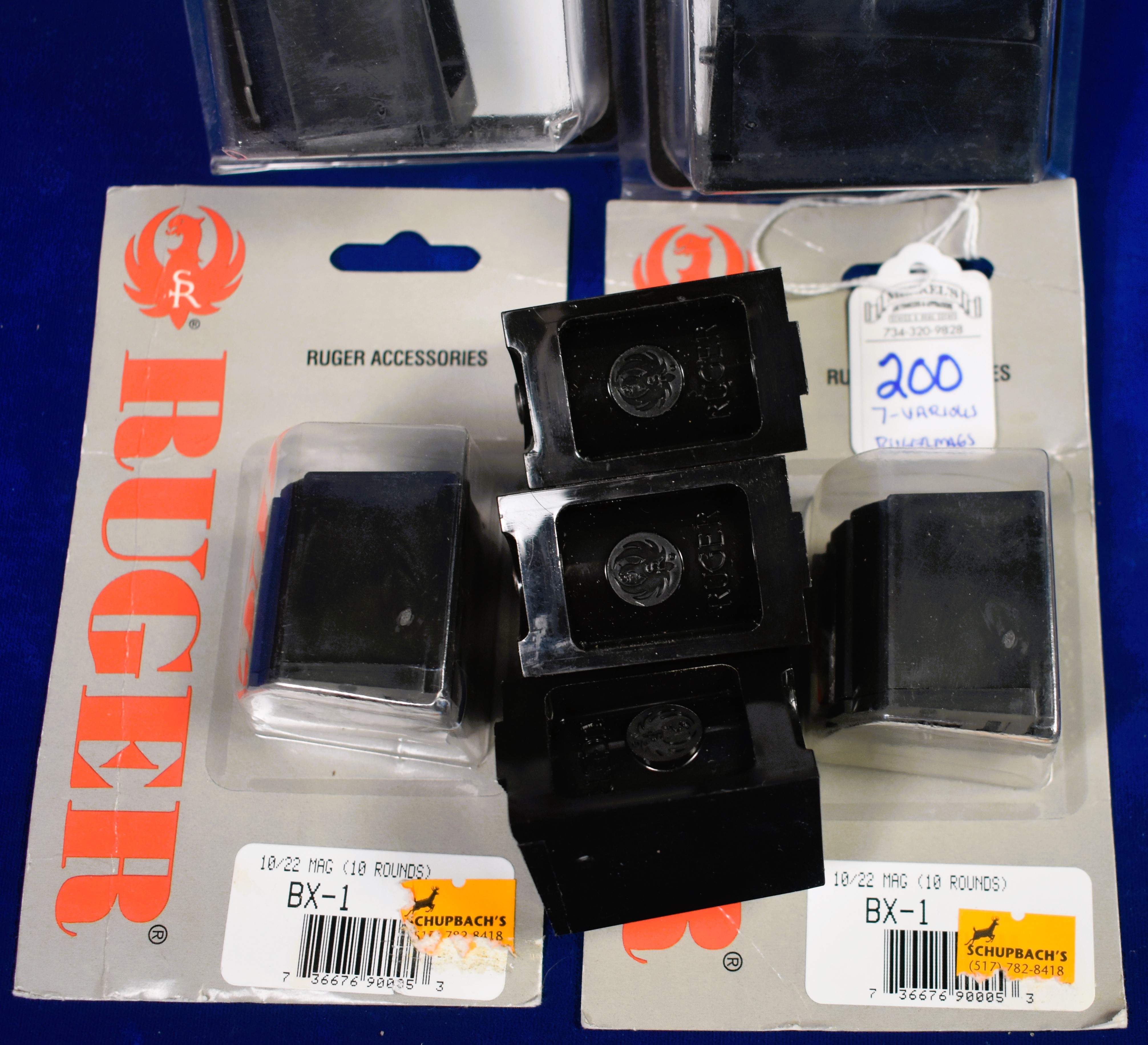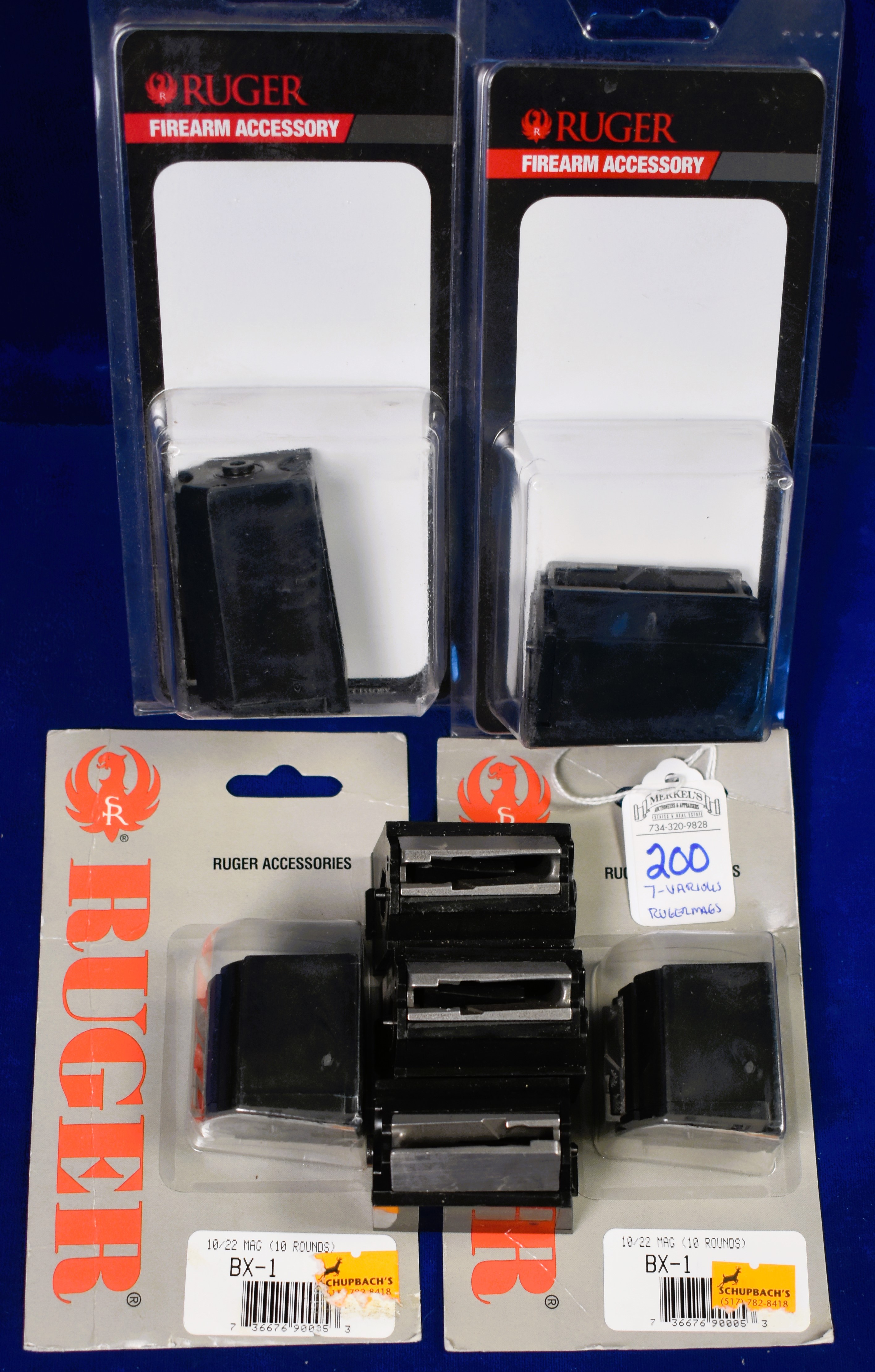 Factory New Old Stock – Lot of 7 – Various Ruger Mags. As Follows: 2 – JHX-2 17 Hornet, 2 – BX-1 10/22 10 Round Rotary, 3 – unknown in plastic bag.