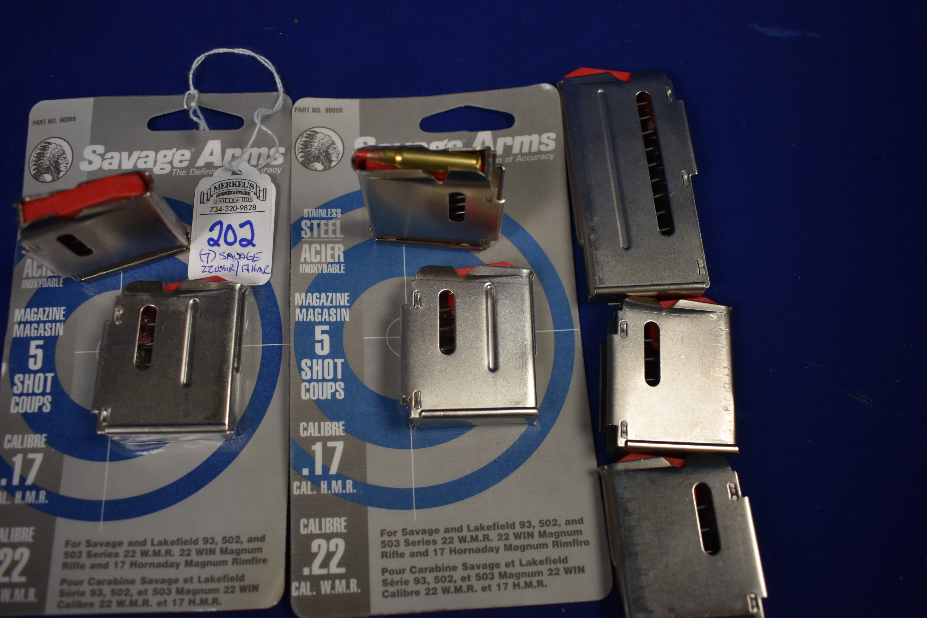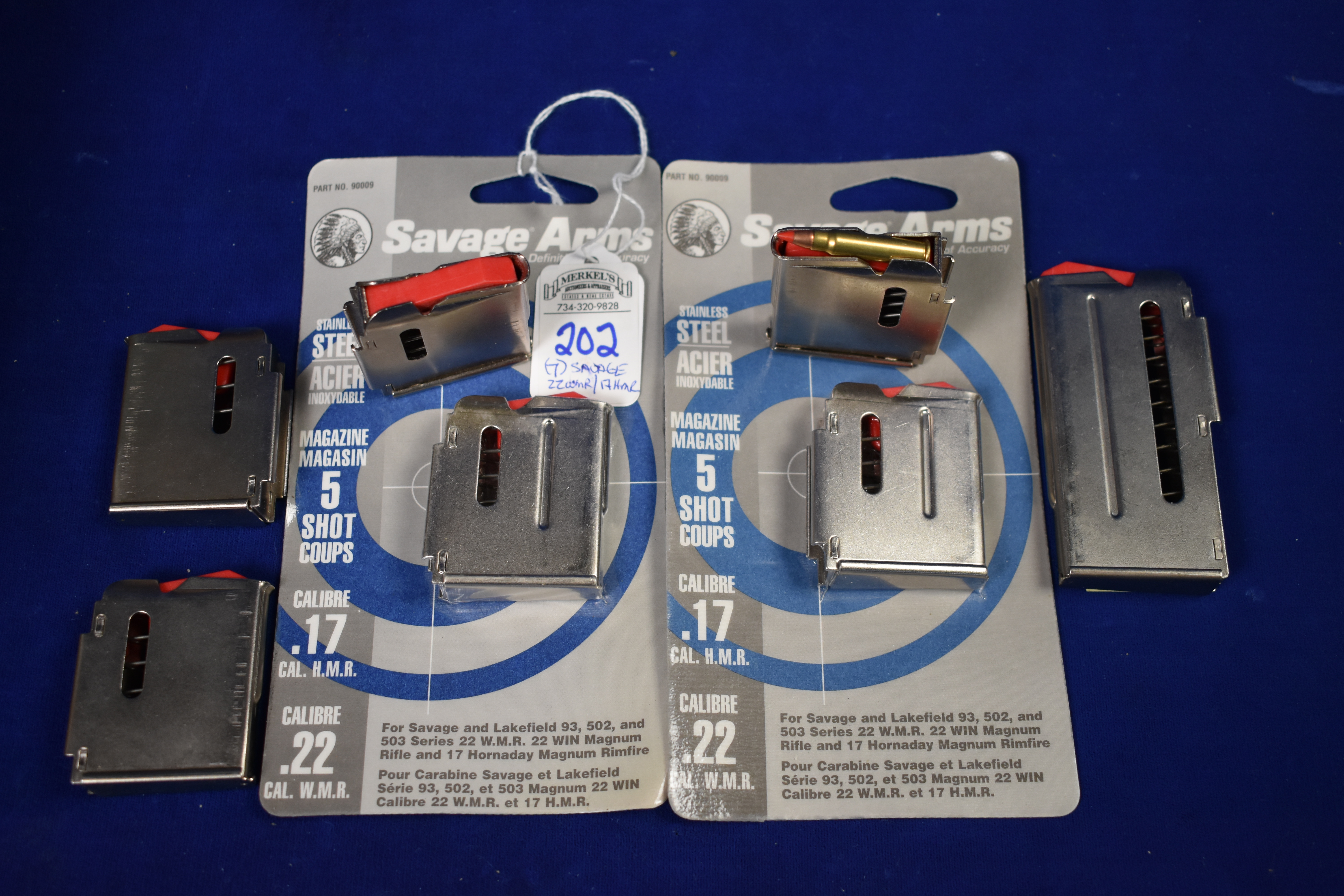 Factory New Old Stock -Lot of 7 – Savage 22 WMR/17 HMR Mags. Detail as follows: 2 Mags – OEM 5 shot, 4 Mags – 5 Shot and 1 Mag – 10 Shot.