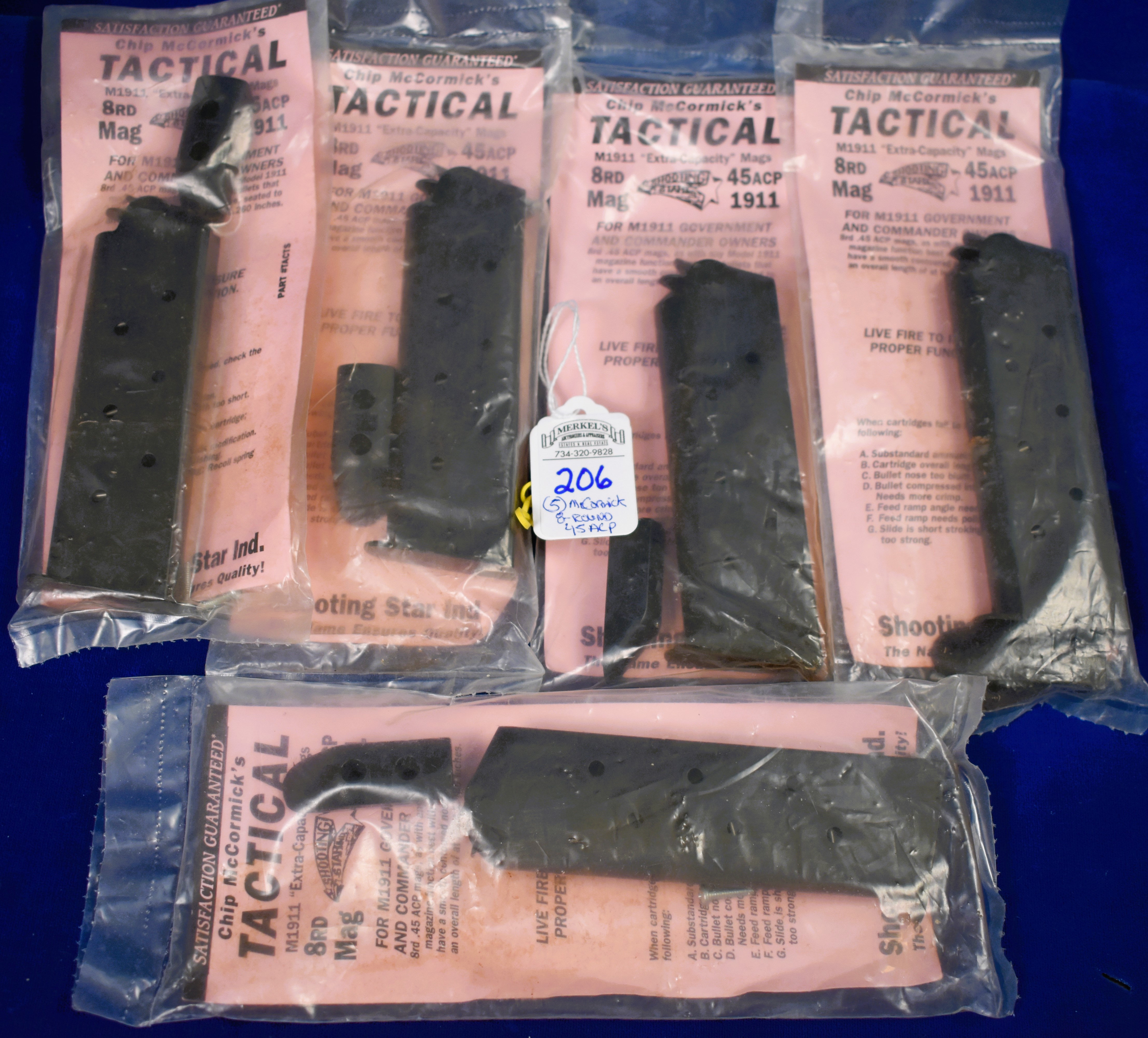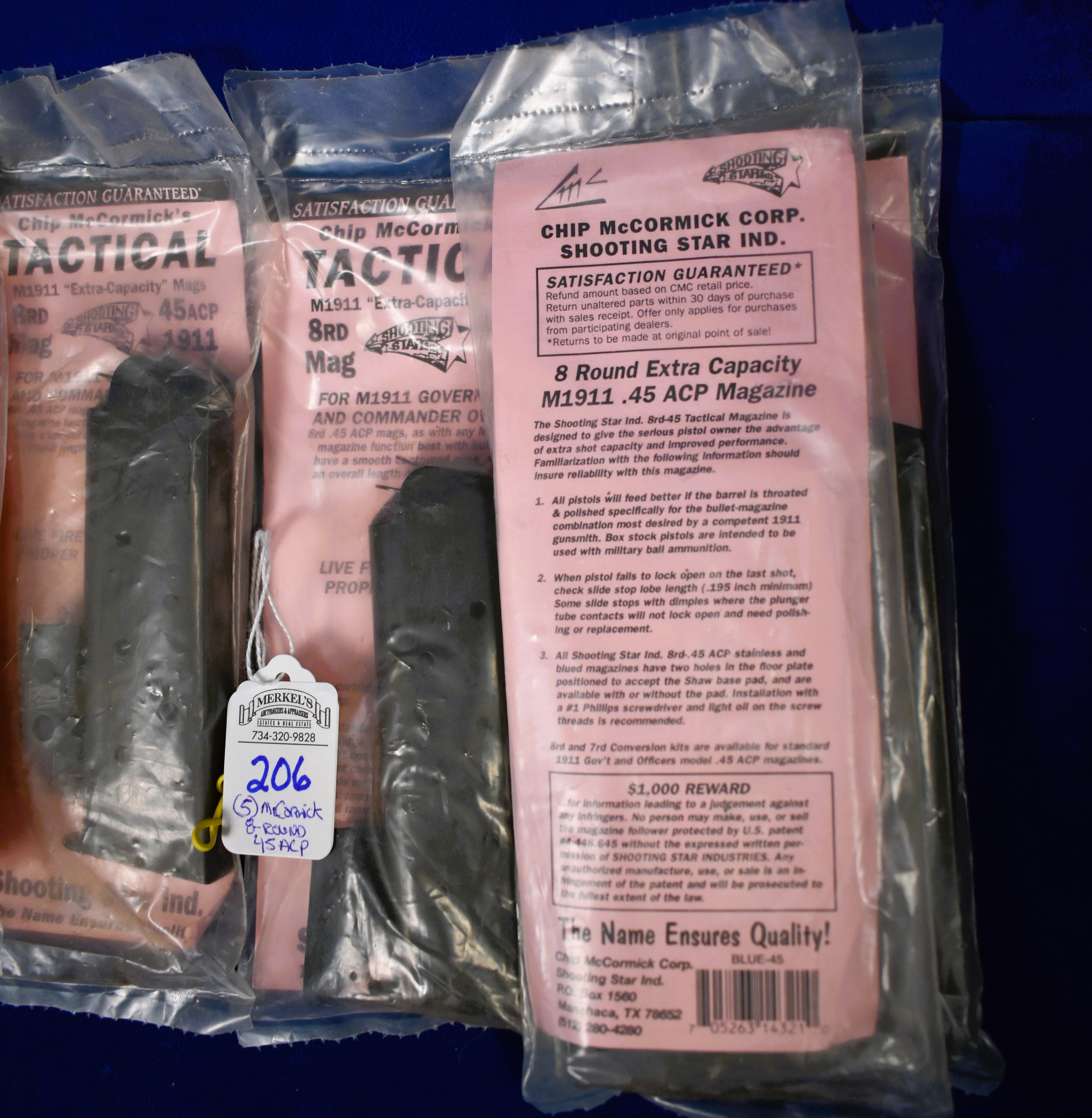 Factory New Old Stock -Lot of 5 – Chip McCormick Shooting Star 45 ACP Mags. All Mags 8 Rounds and Stainless Steel.