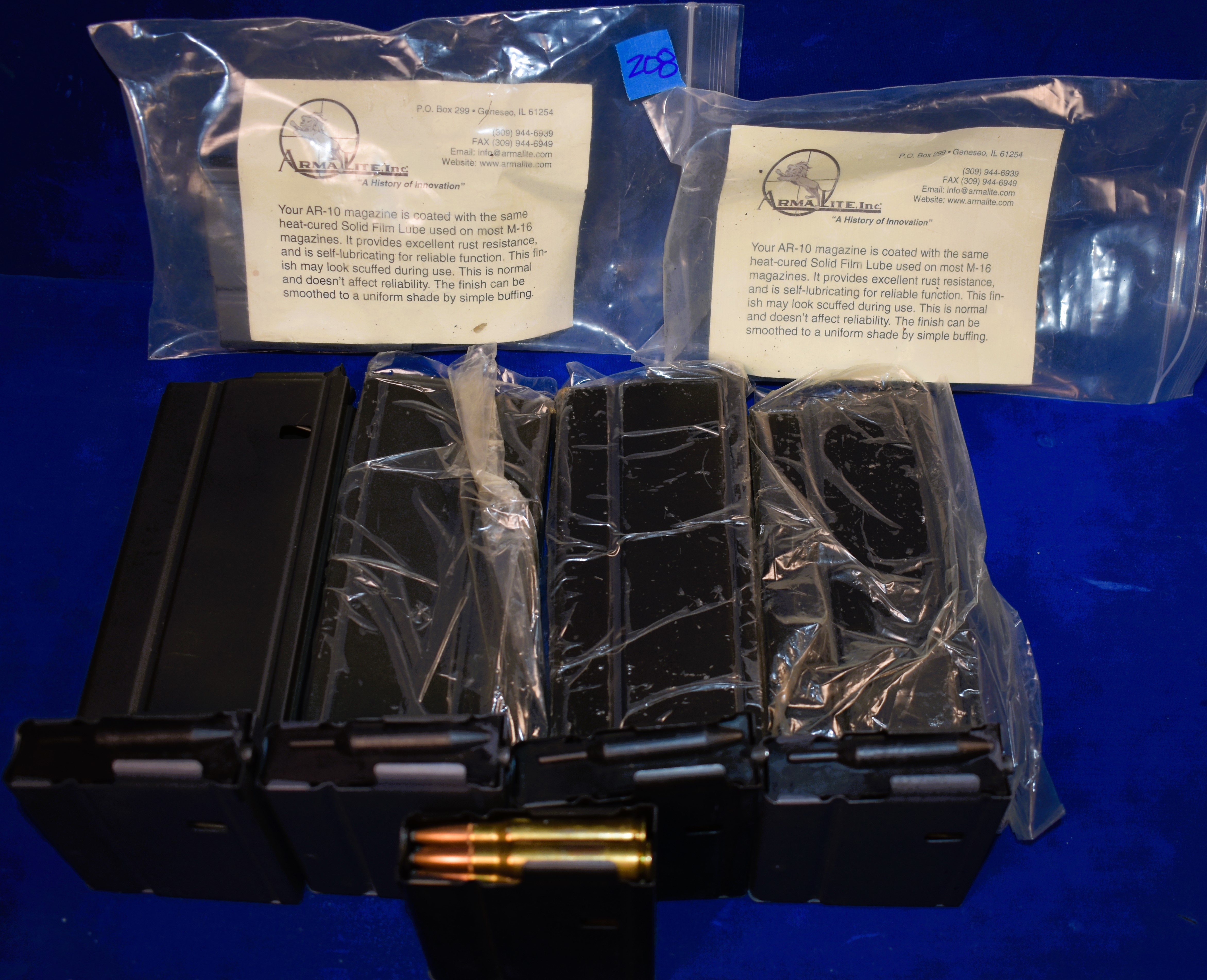 Factory New Old Stock -Lot of 7 – Arma Lite 308 Win AR-10 Mags. Details as follows: 4 Mags – 20 Rounds and 7 Mags – 10 Rounds.