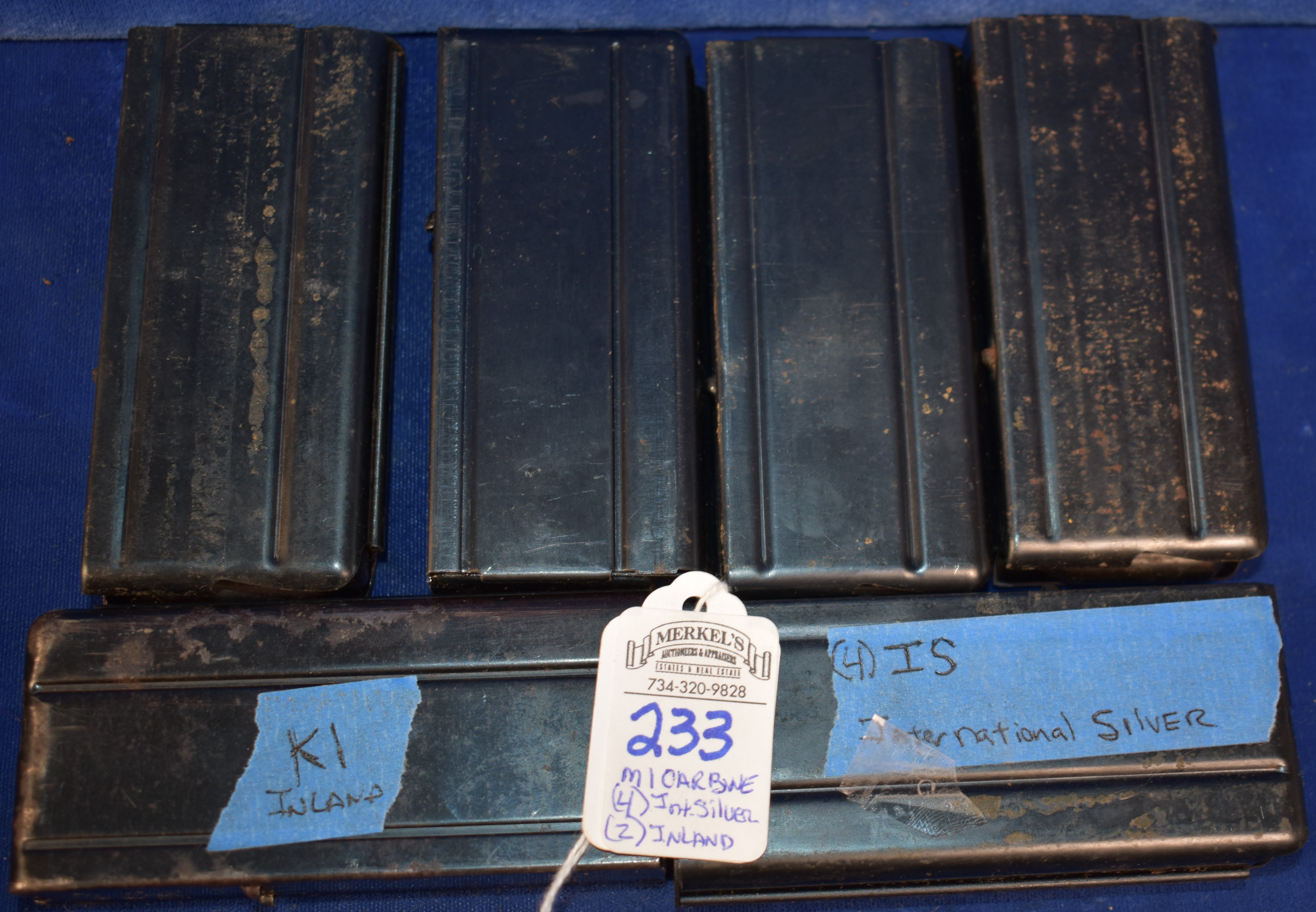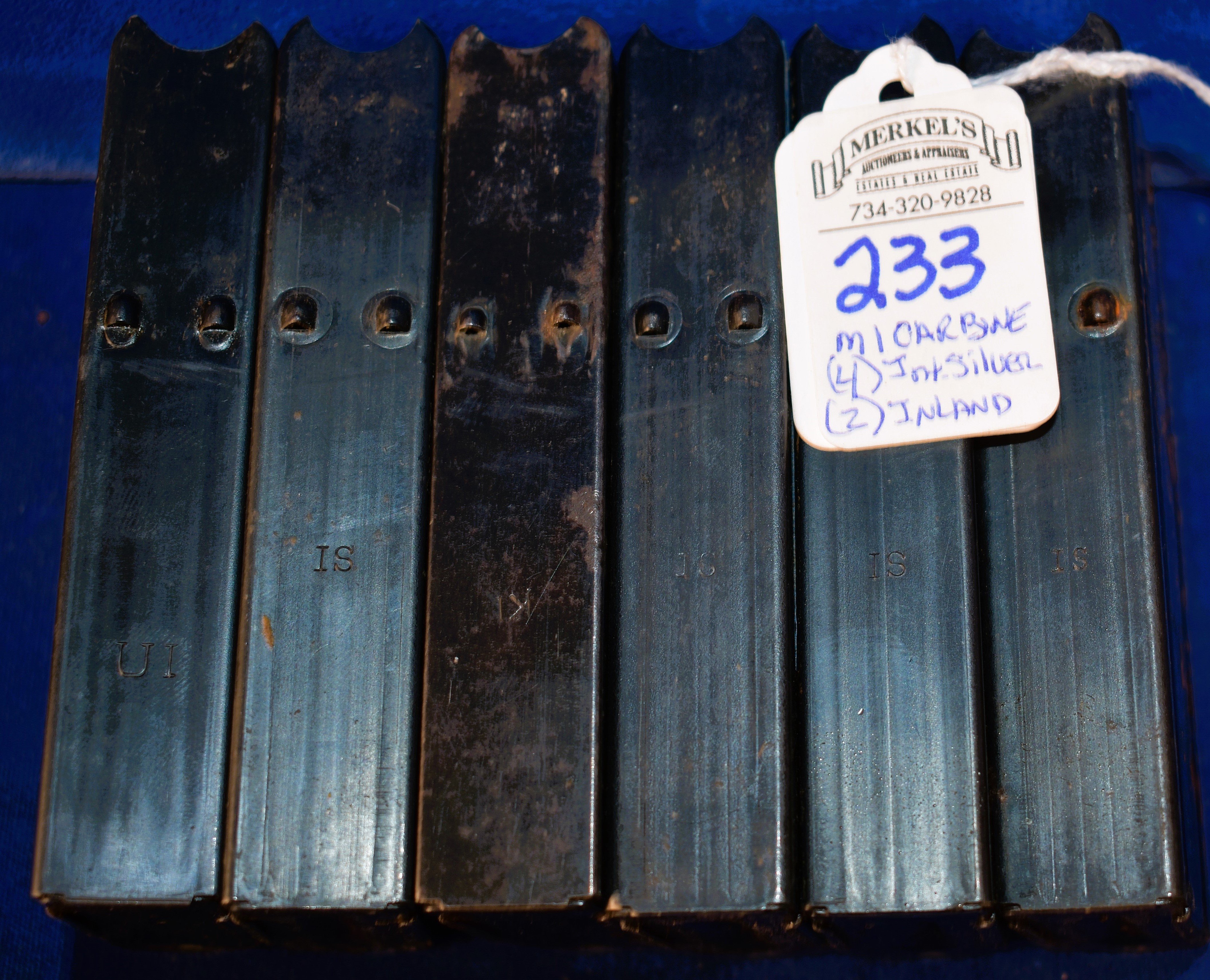 Lot of 6 M1 Carbine Factory Marked 30 Caliber 15 Round Magazines.
