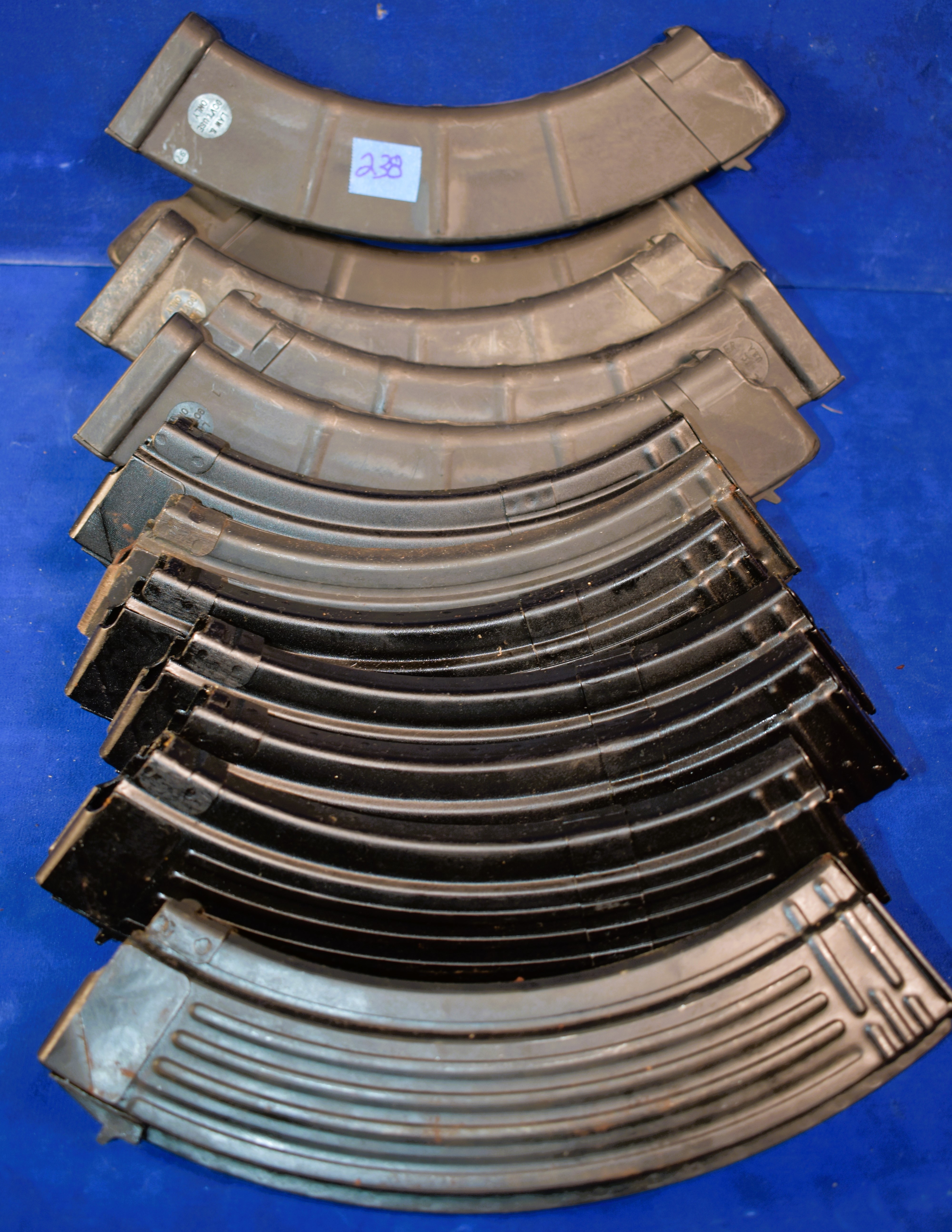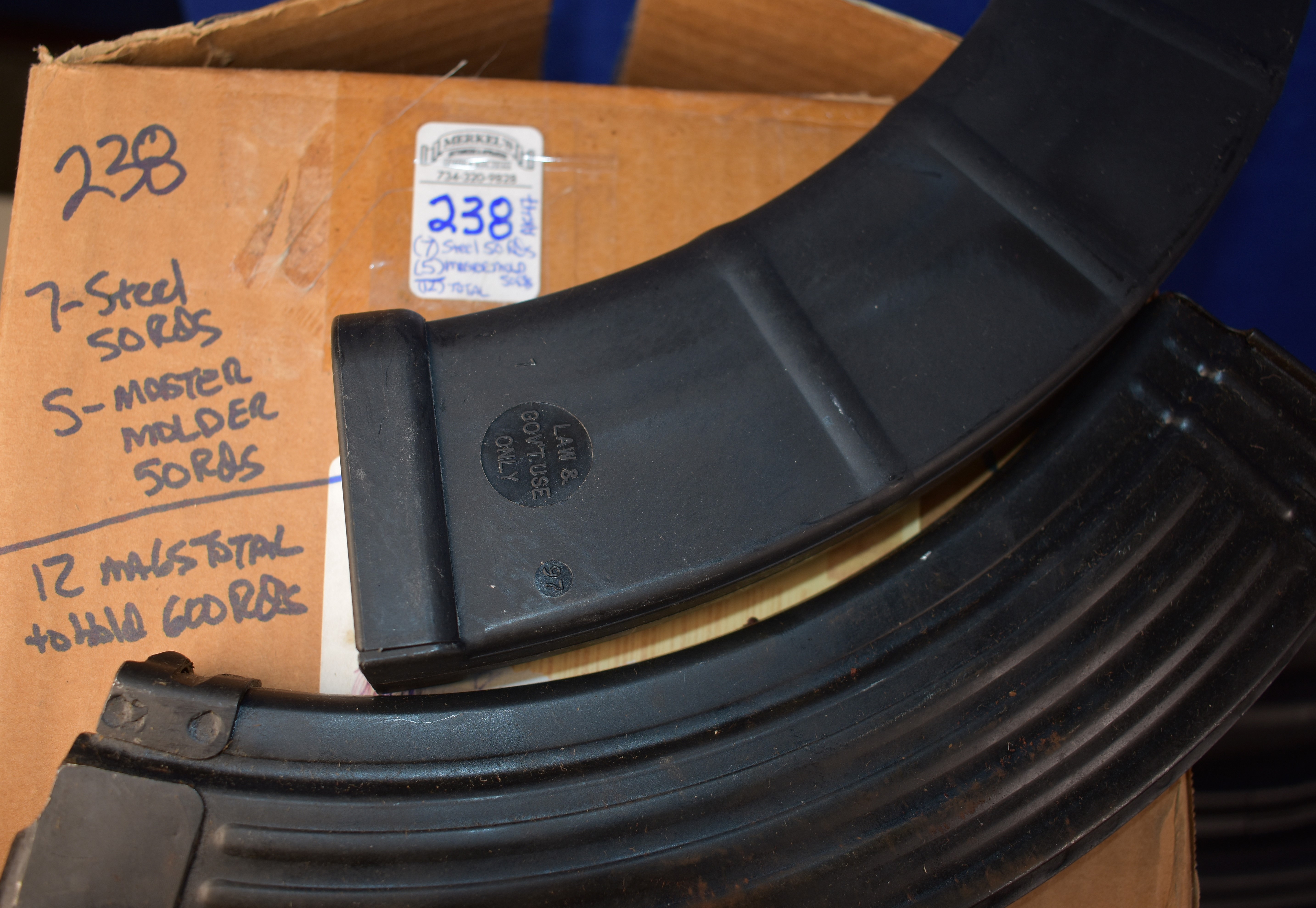 Lot of 12 – AK – 47 Metal Mags. 7 Mags – Steel – having 50 Rounds and 5 Mags – Master Molder – having 50 Rounds. For a total capacity of 600 Rounds.