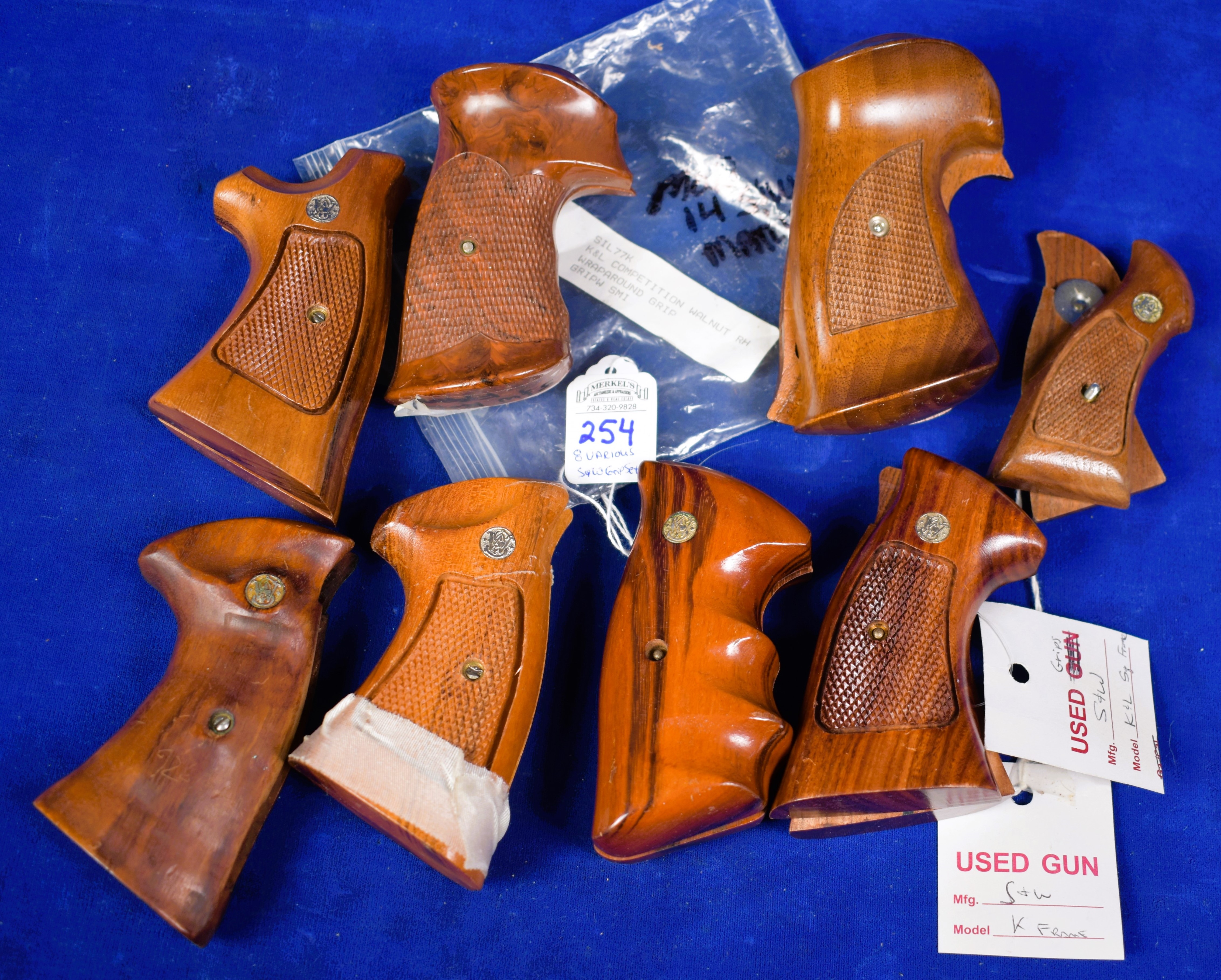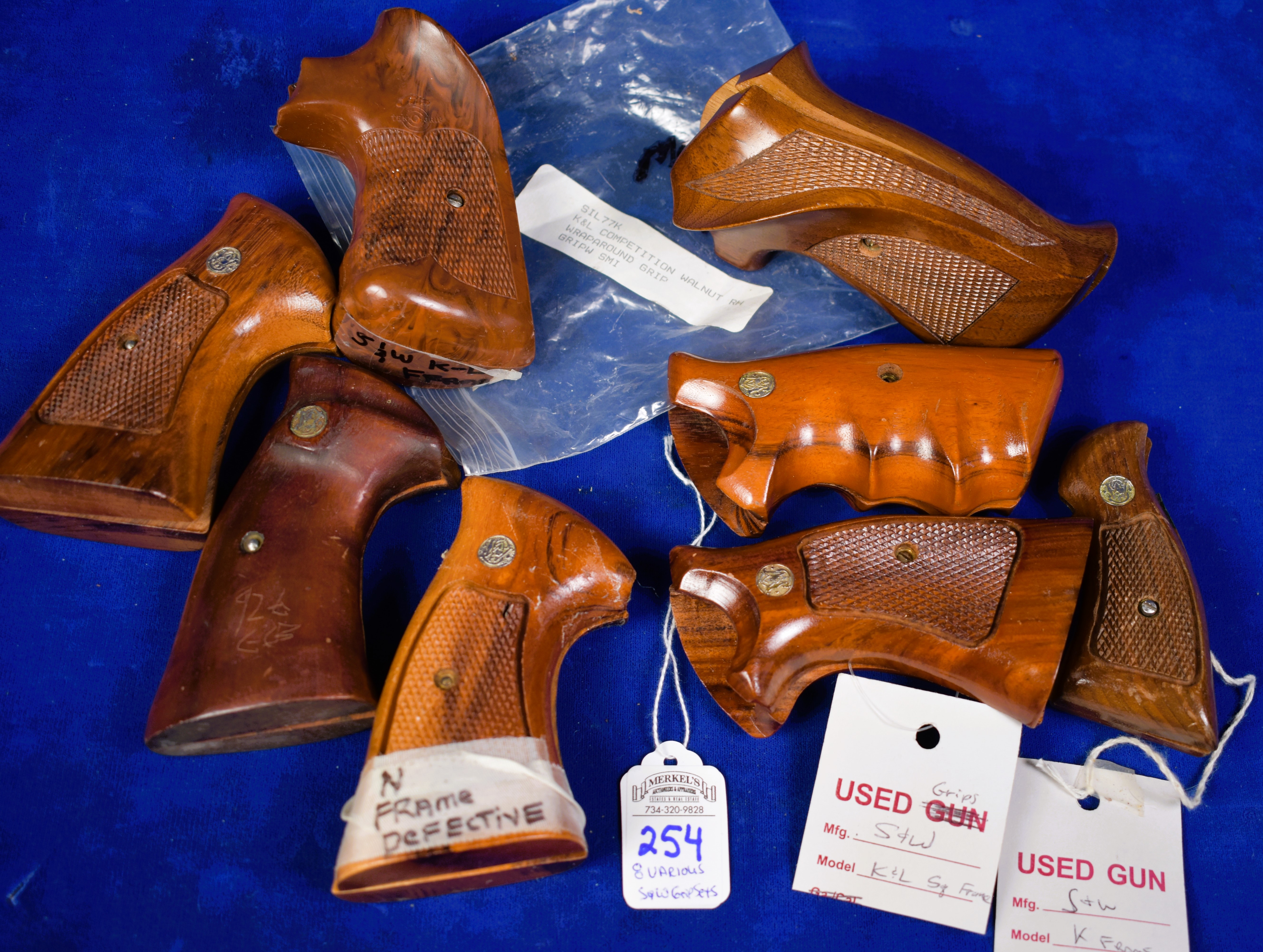 Lot of 8 Smith & Wesson Grip Sets of which 6-Sets have S&W Medallions inset and one set fits the Model 14 Match. See photos as evidence of condition.
