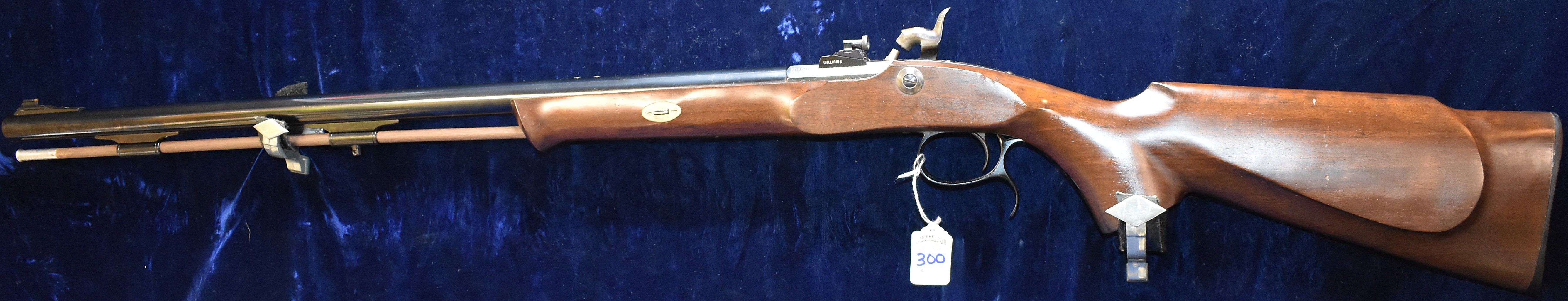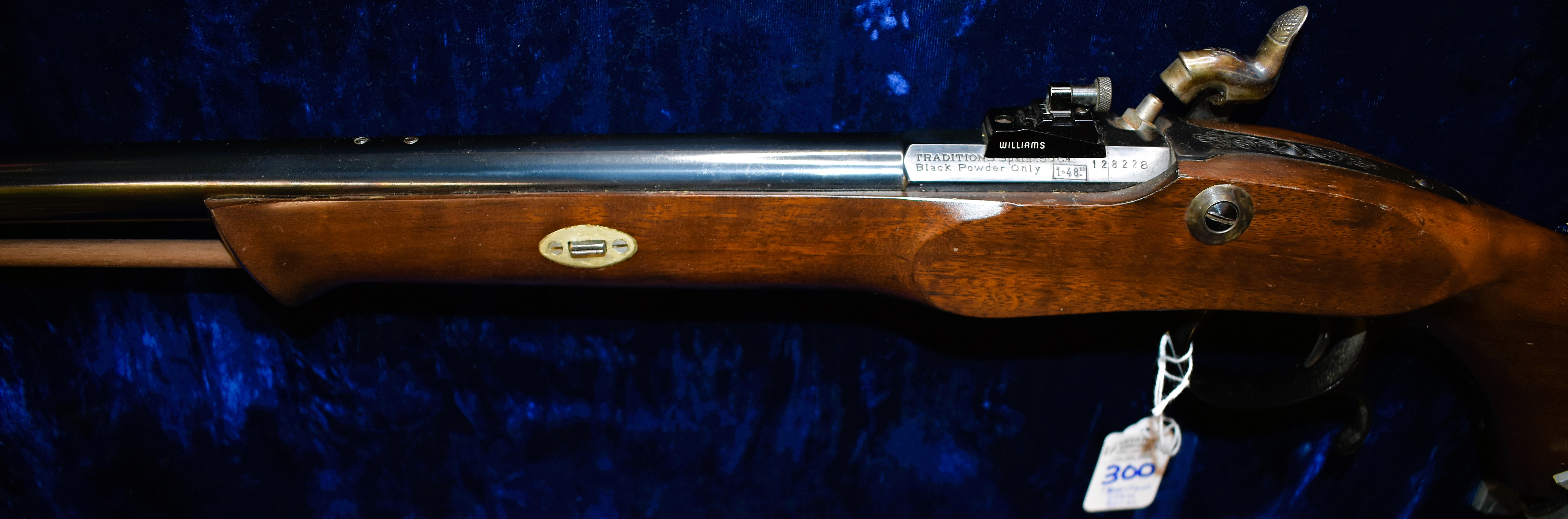 Traditions SPAIN 50 Caliber Muzzle Loading Rifle with Pistol Grip Style Stock and Williams Rear Peep Sight. This example has a 28" ROUND Barrel with Half Stock and is pre tapped atop barrel for a scope mount if desired. Serial# 128228, Nice case colors on sidelock plate.