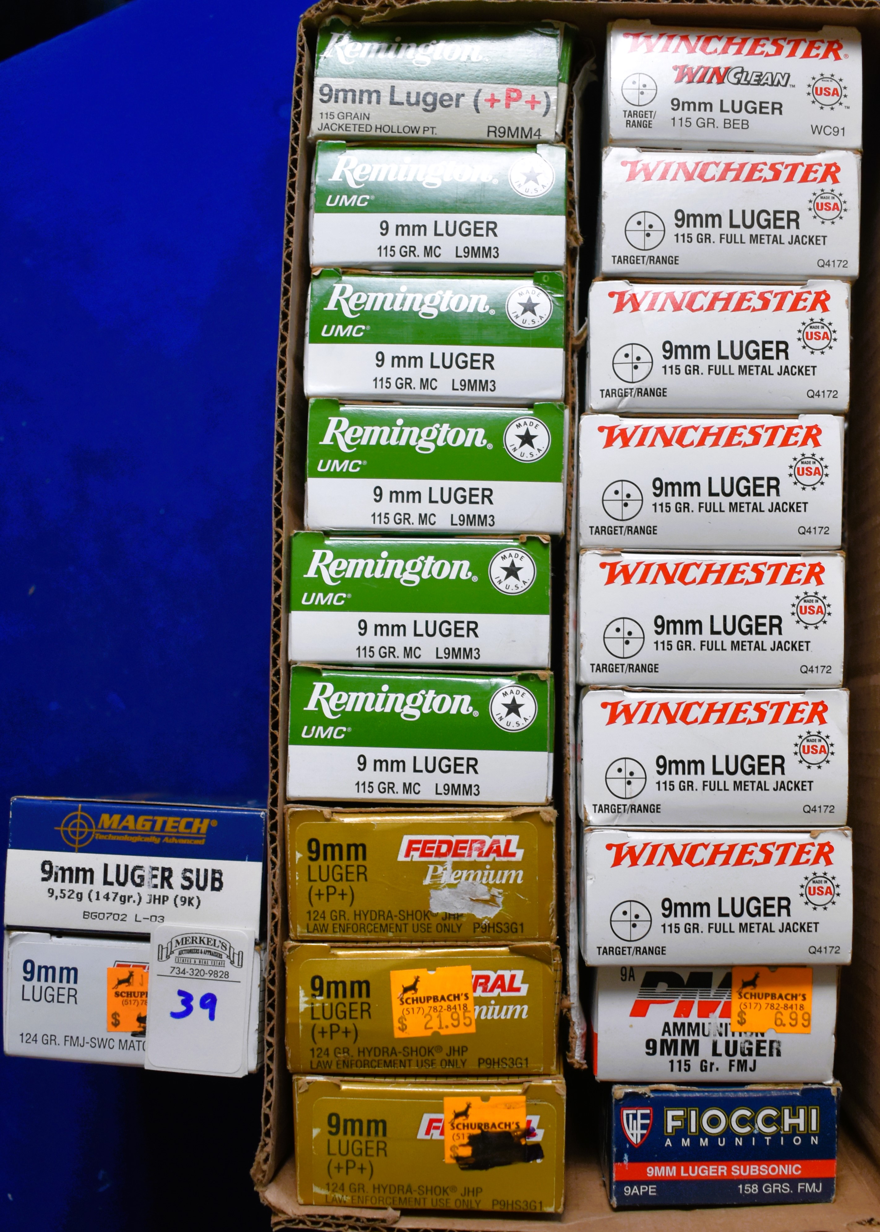 Factory New Old Stock – 1000 Rounds (20 Boxes) Various Mfg. of 9MM Luger. See pictures for names of manufacturers and boxes. Shipping ONLY UPS GROUND due to regulations.