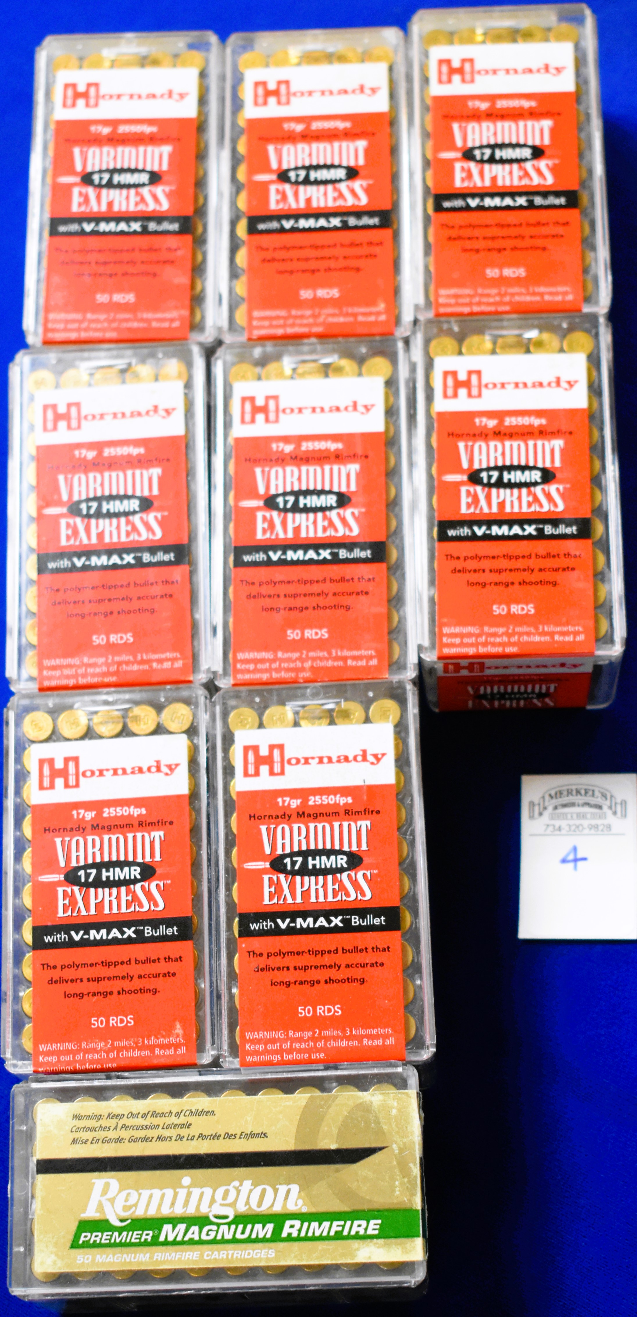 Factory New Old Stock- 450 Rounds (9 Boxes) Hornady 17 HMR Varmint Express, with V-Max Bullet, Shipping ONLY UPS GROUND due to regulations.
