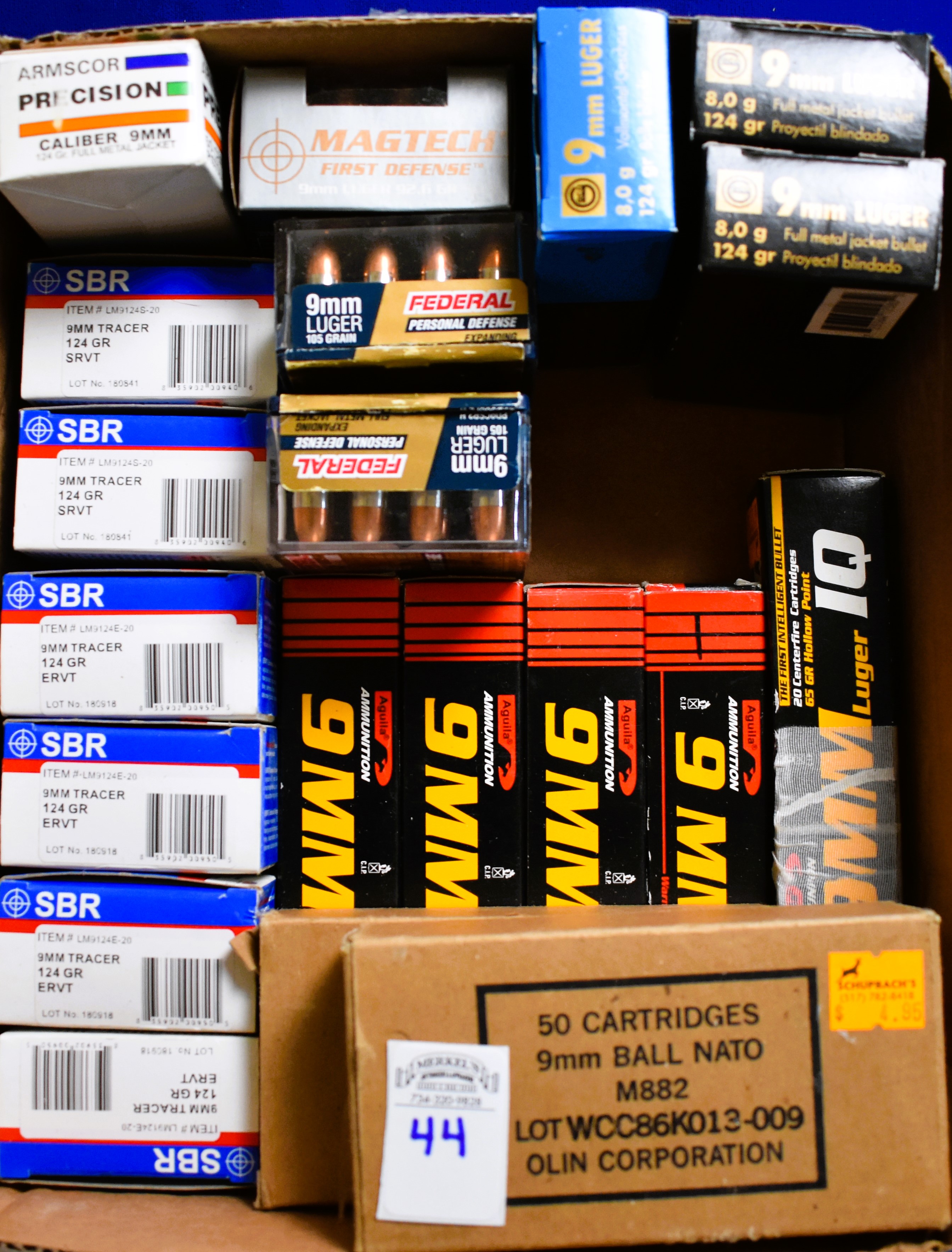 Factory New Old Stock – 550 Rounds (20 Boxes) Various Mfg. of 9 MM Luger and 9MM Tracer. See pictures for names of manufacturers and boxes. Shipping ONLY UPS GROUND due to regulations.