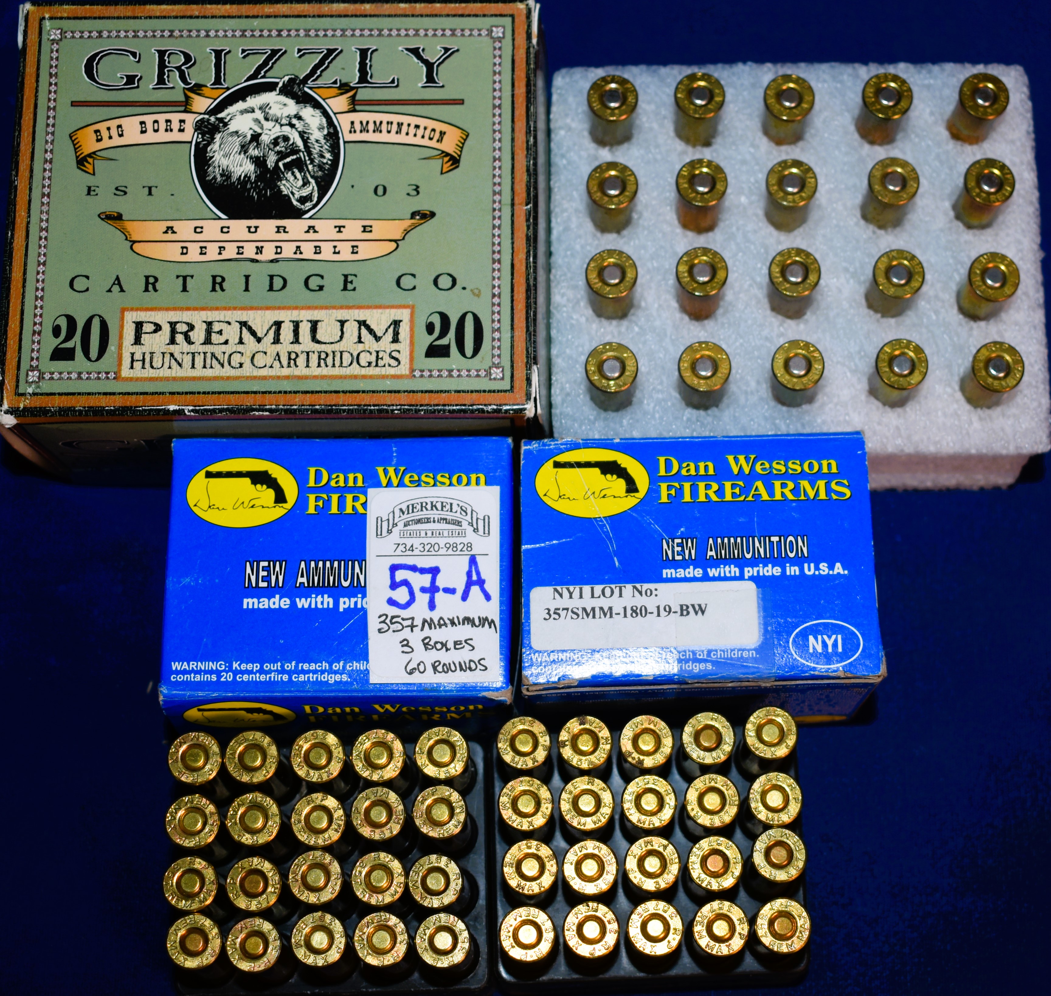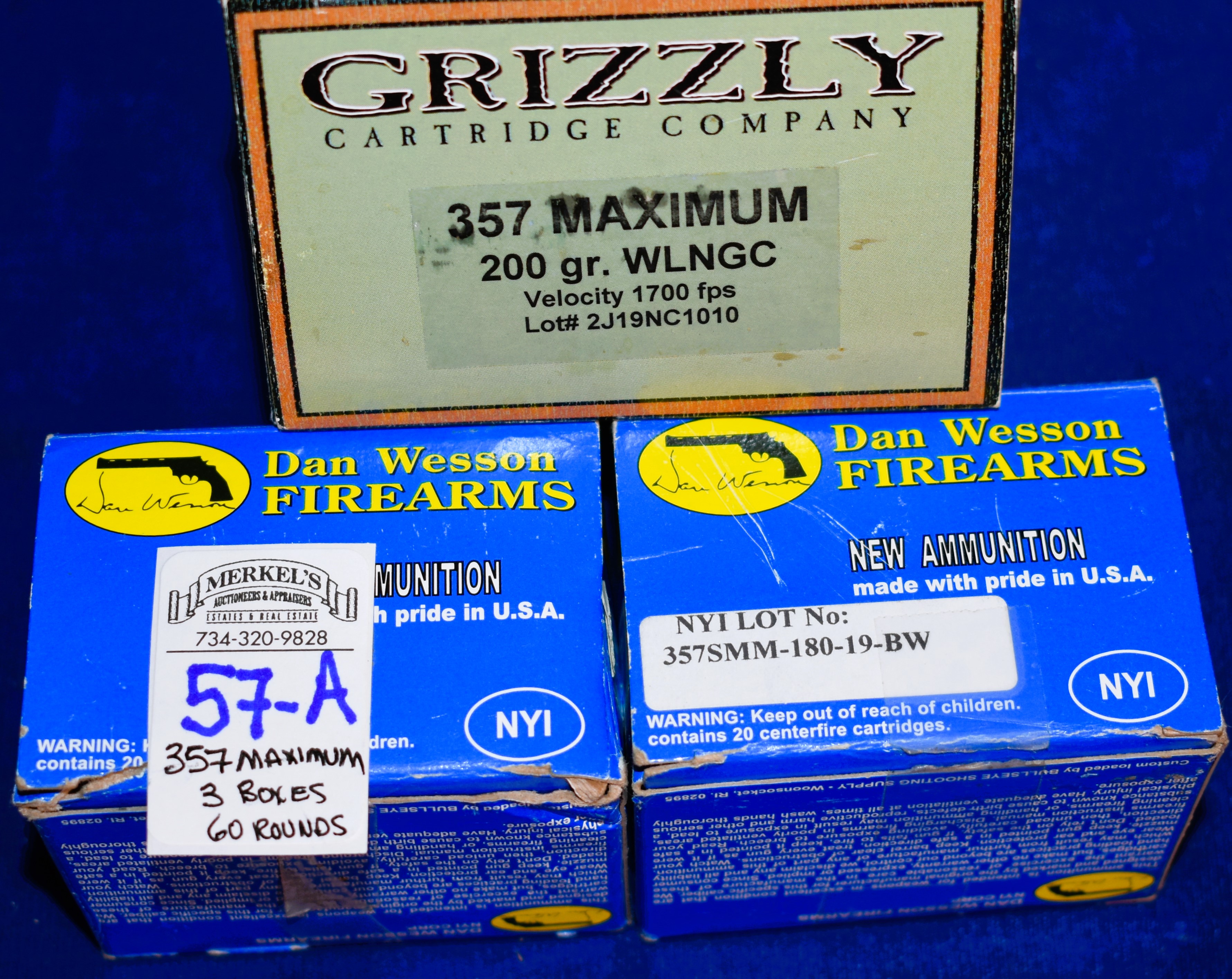 Factory New Old Stock -60 Rounds (3 Boxes) 1 box – Grizzly 357 Maximum 200 gr WLNGC and 2 boxes – Dan Wesson 357 Maximum 180 gr. full profile jacketed. Shipping ONLY UPS GROUND due to regulations.