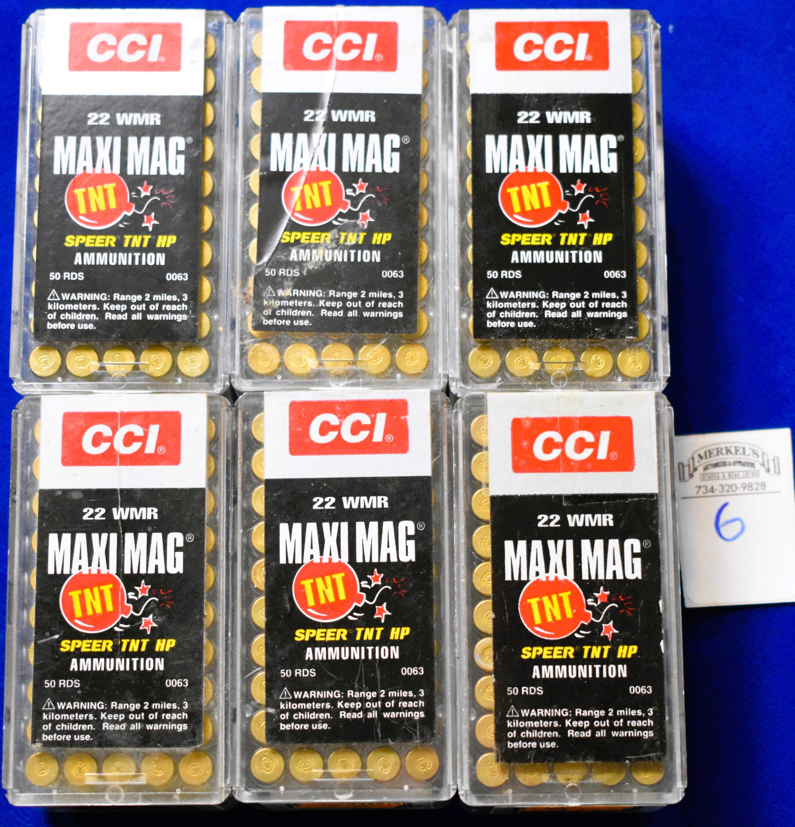 Factory New Old Stock- 300 Rounds (6 Boxes) CCI 22 WMR Maxi Mag, Speer TNT Hollow Point, Shipping ONLY UPS GROUND due to regulations.
