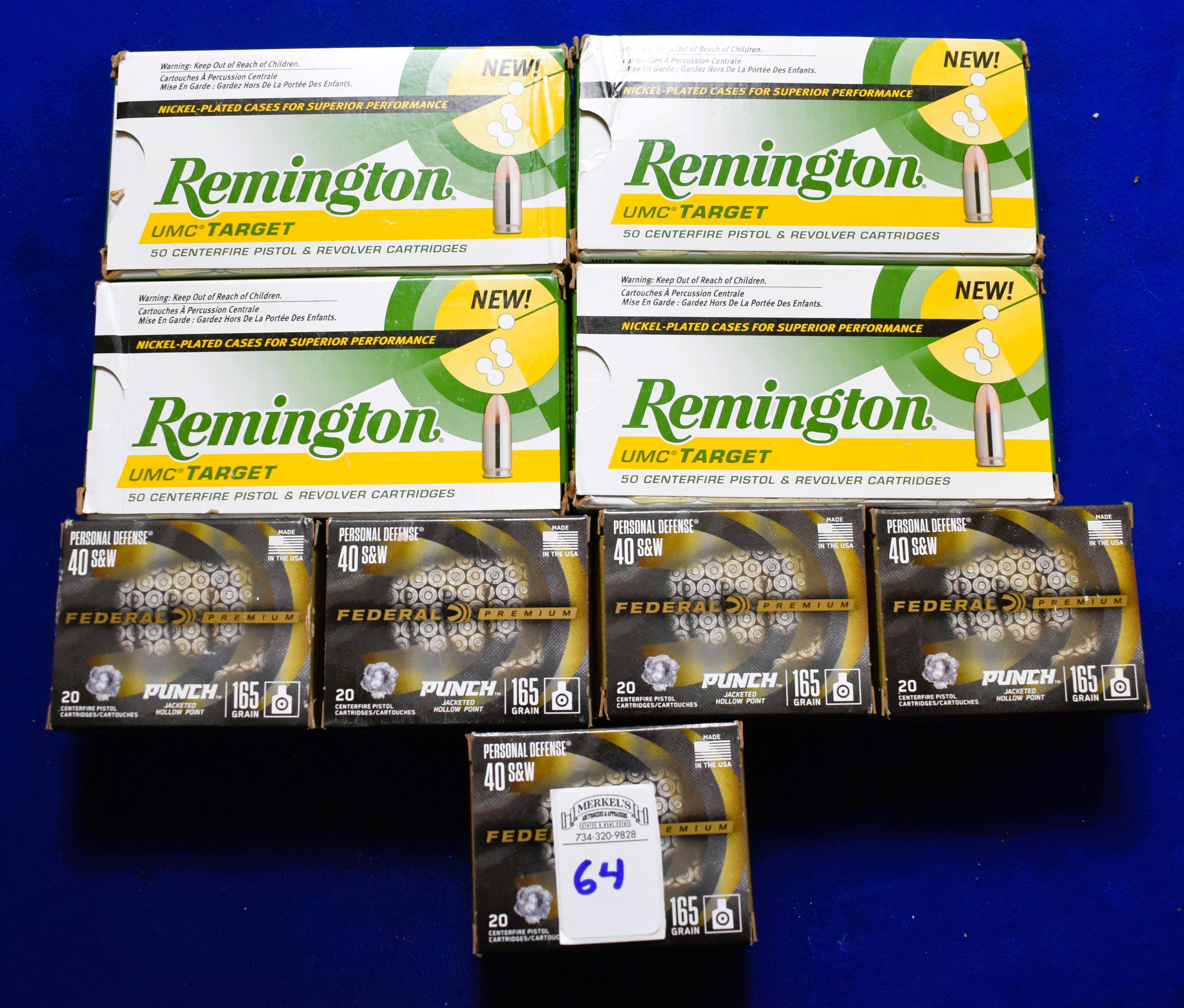 Factory New Old Stock – 300 Rounds (9 Boxes) 4 boxes – Remington UMC Target 40 S & W 180 gr. and 5 boxes – Federal Premium 40 S & W 165 gr. Punch Jacketed HP. Shipping ONLY UPS GROUND due to regulations.