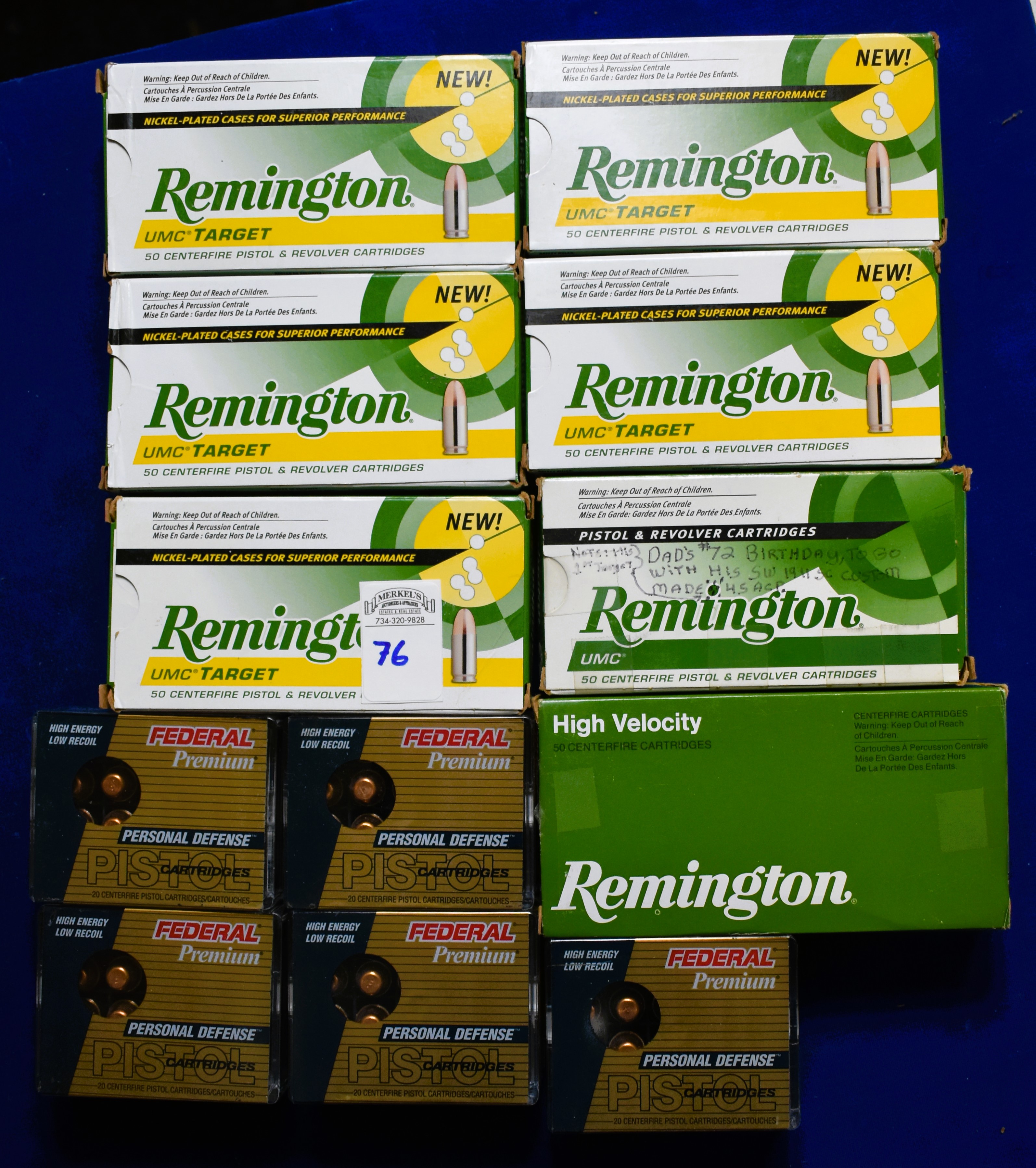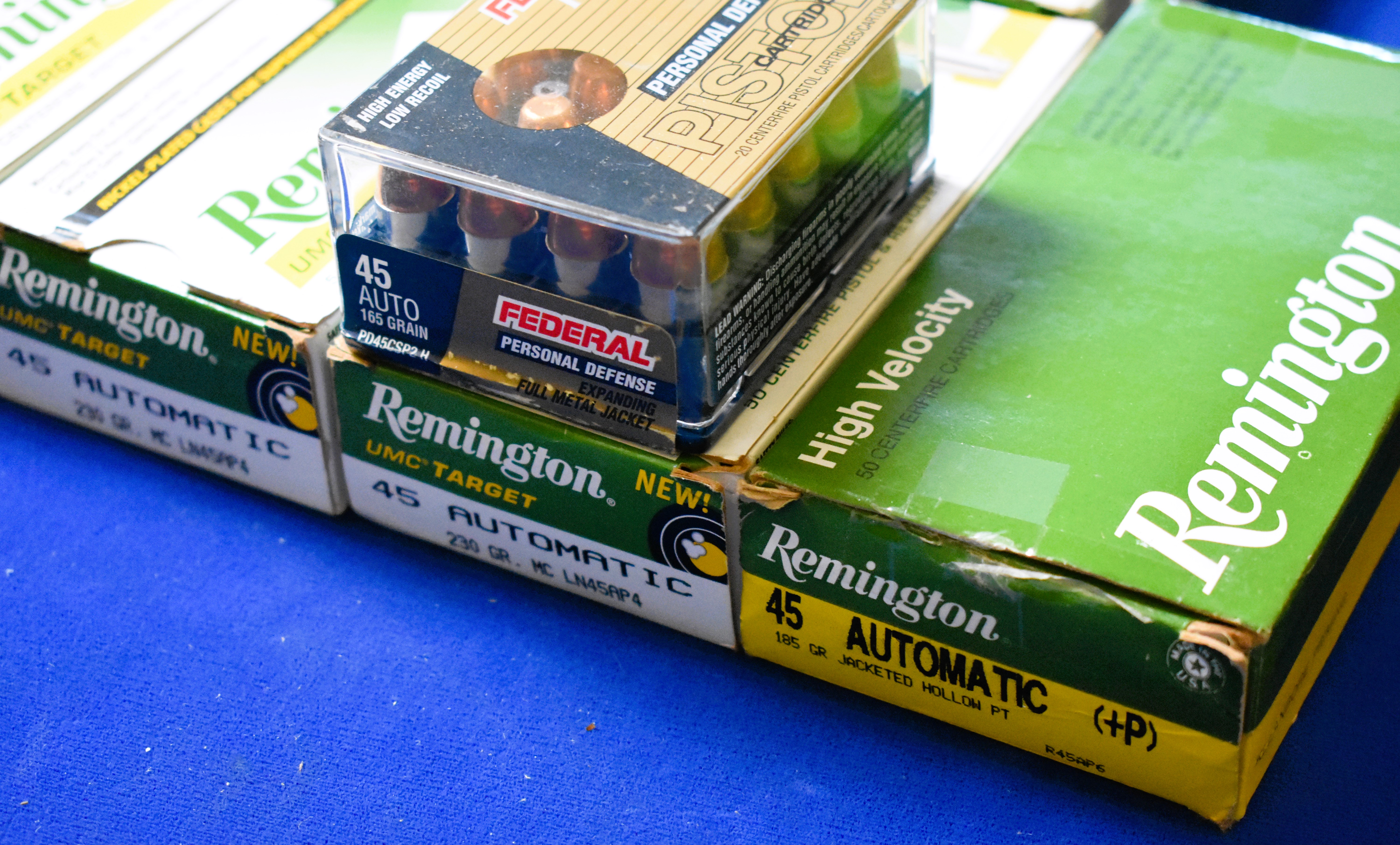 Factory New Old Stock – 450 Rounds (12 Boxes) Various Mfg. of 45 Auto. 5 boxes – Federal Premium 45 Auto, 165 gr., expanding FMJ. 6 boxes – Remington 45 Auto, 185 gr. Jacketed HP. 1 box – Remington 45 Auto, 230 Gr. Jacketed HP. Shipping ONLY UPS GROUND due to regulations.