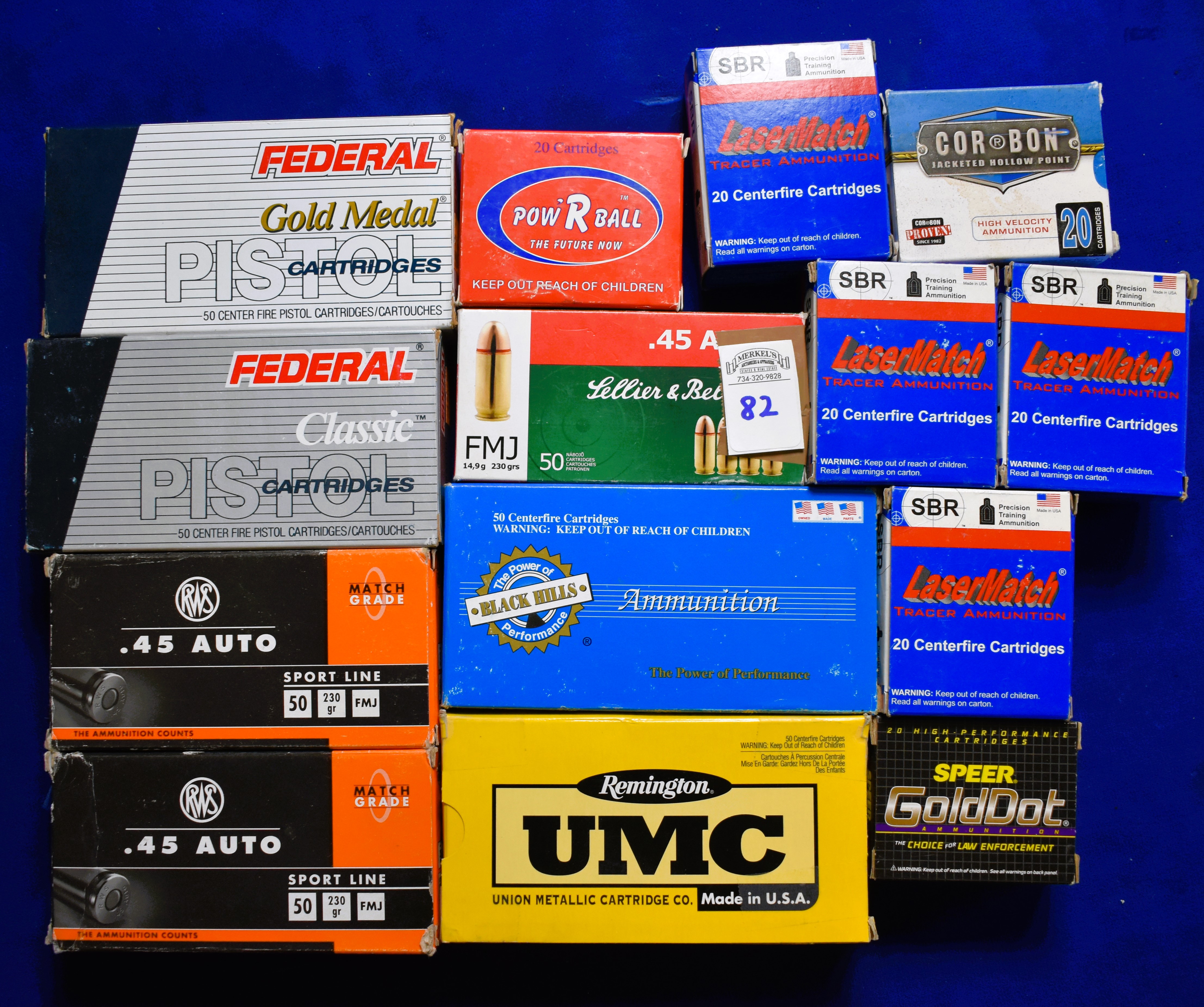 Factory New Old Stock -490 Rounds (14 Boxes) Various Mfgs. of 45 Auto – please see pictures for mfg. and quantity of boxes. Shipping ONLY UPS GROUND due to regulations.