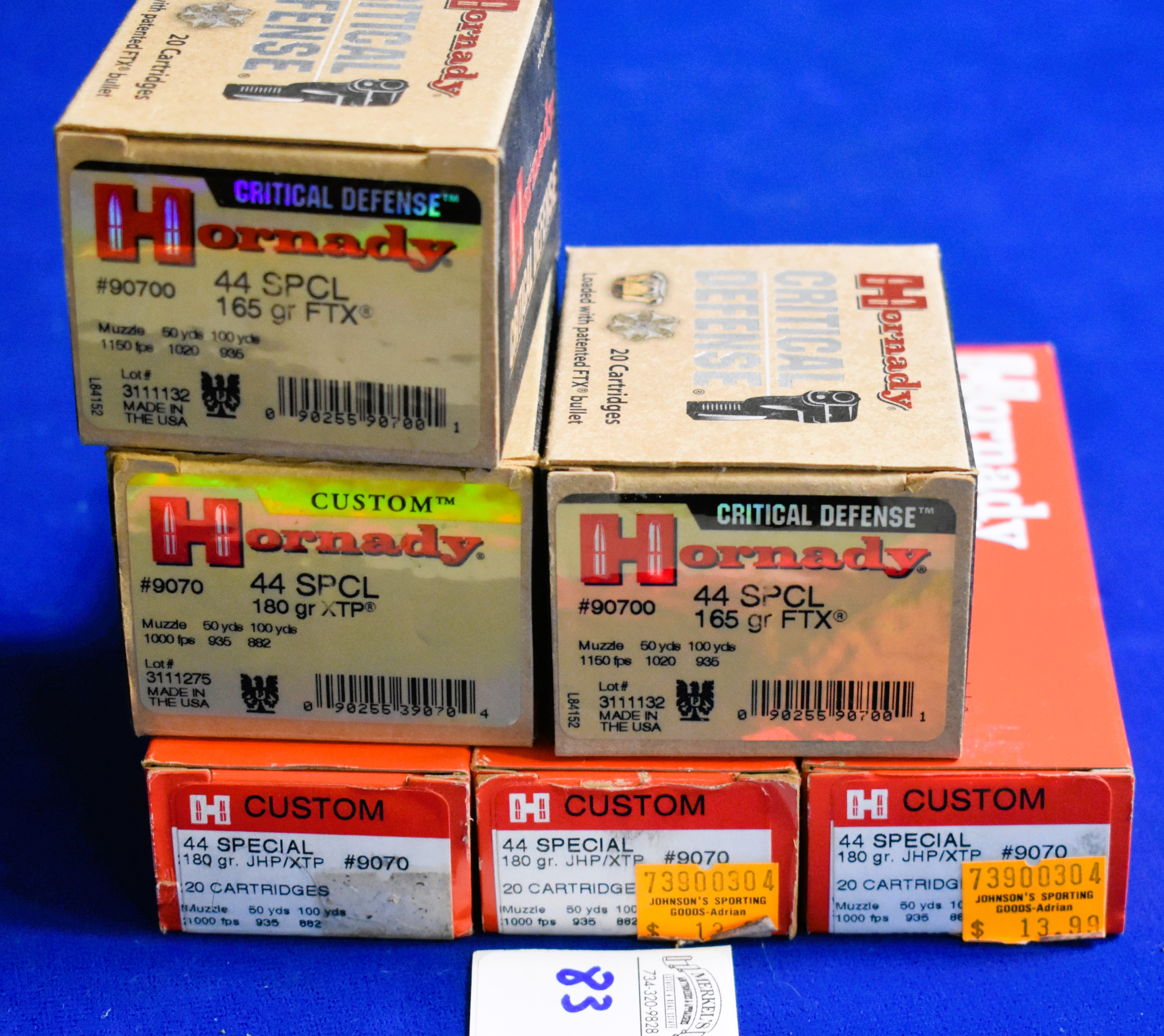 Factory New Old Stock -120 Rounds (6 Boxes) Hornady .44 special, 180 gr. JHP/XTP. Shipping ONLY UPS GROUND due to regulations.