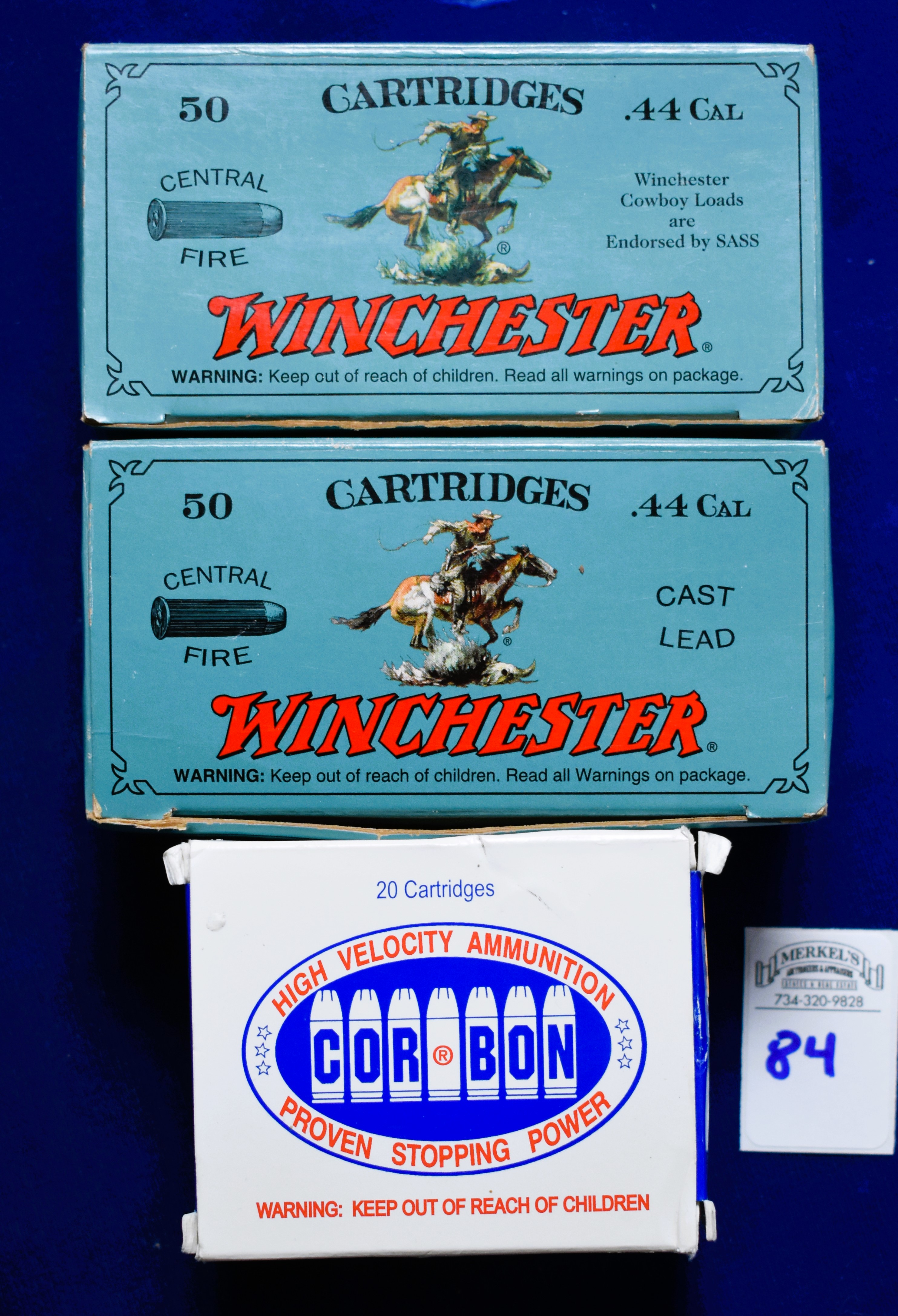 Factory New Old Stock -120 Rounds (3 Boxes) 2 boxes of Winchester 44 special, cowboy action loads, 240 gr. and 1 box of Corbon 44 special 165 gr. JHP. Shipping ONLY UPS GROUND due to regulations.