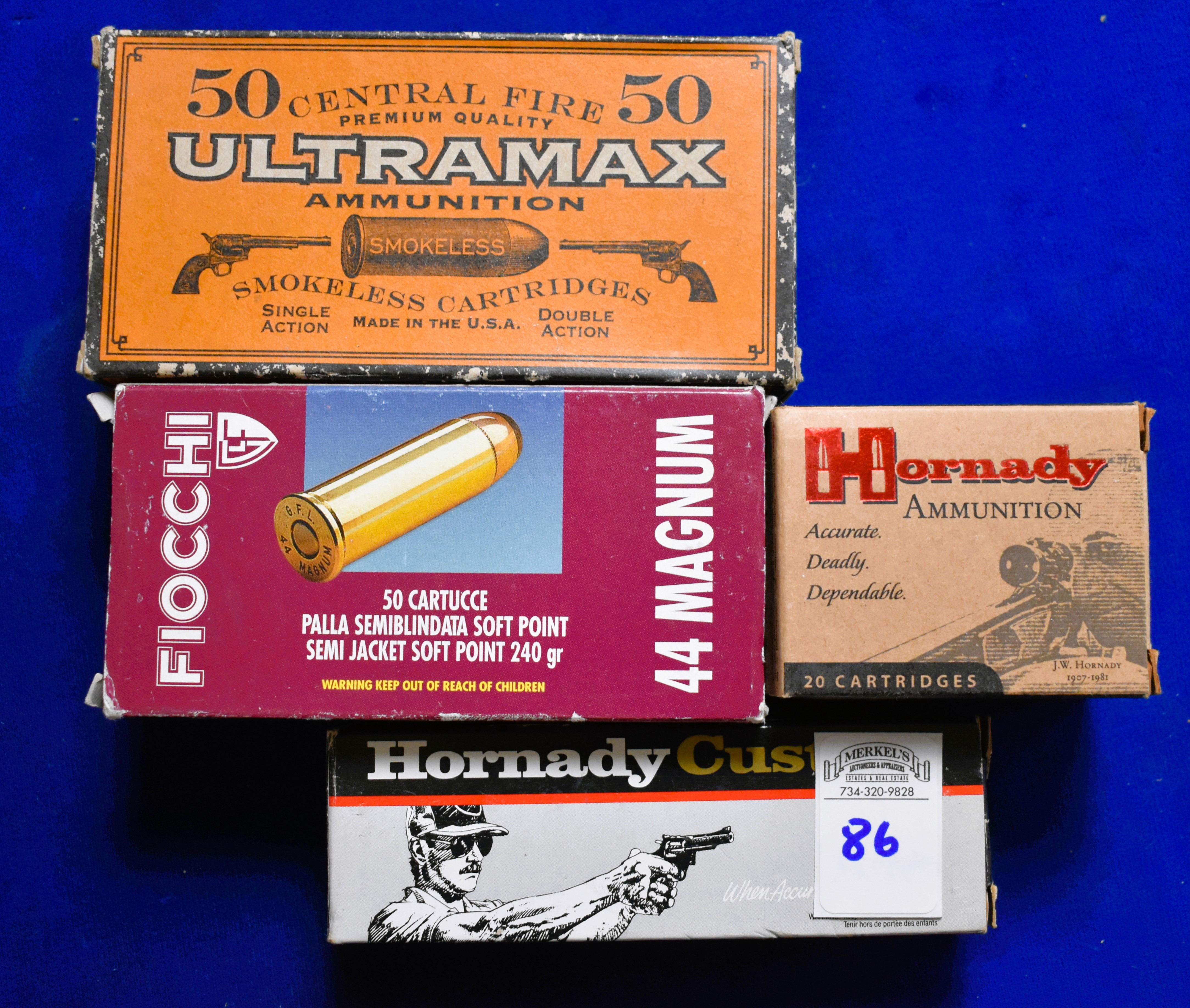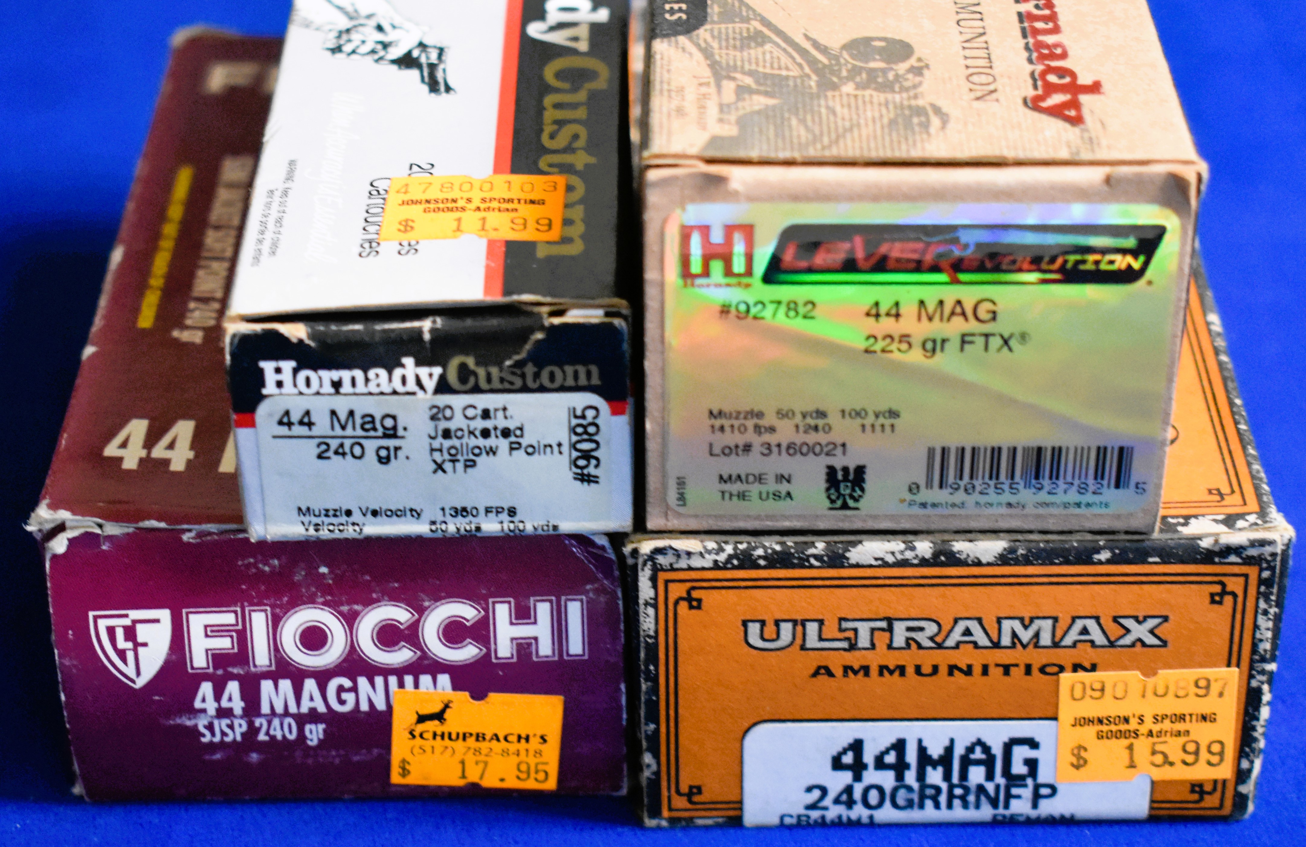 Factory New Old Stock -140 Rounds (4 Boxes) Various Mfgs. of 44 Magnum – please see pictures for mfg. and quantity of boxes. Shipping ONLY UPS GROUND due to regulations.
