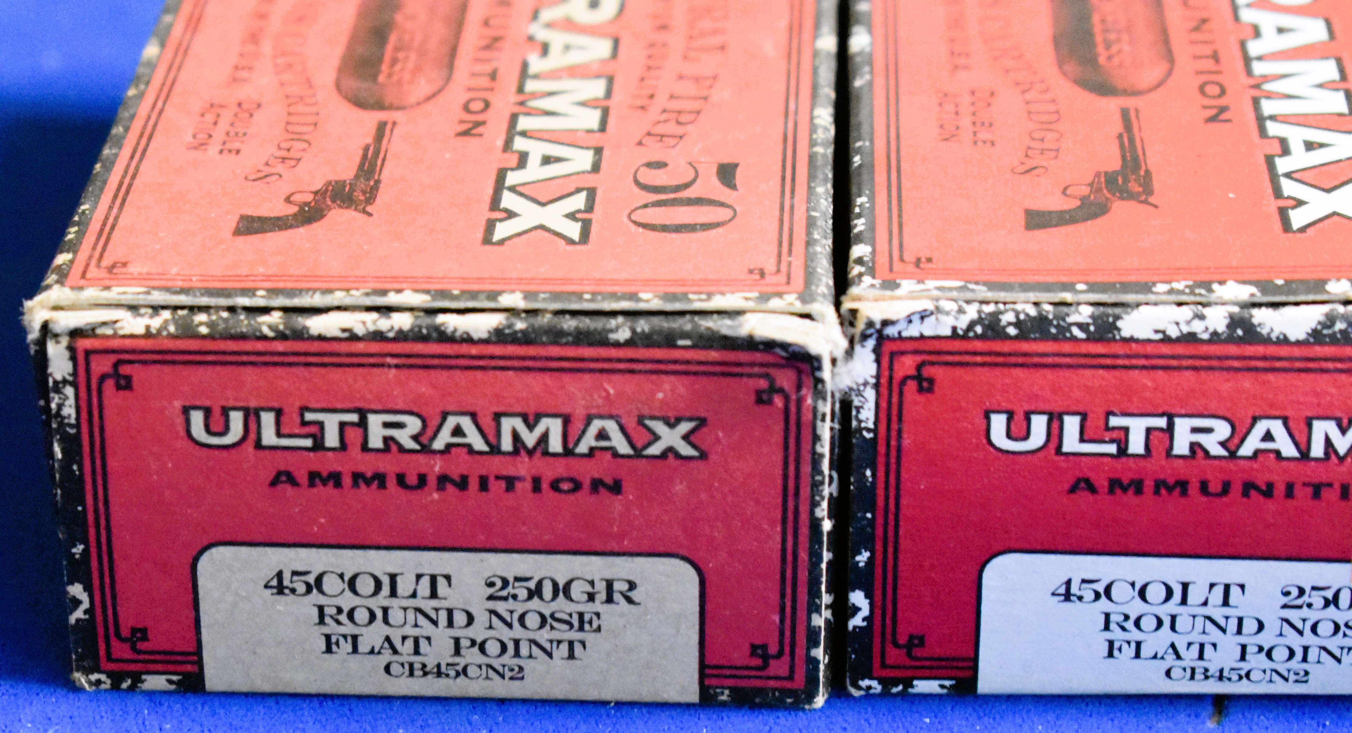 Factory New Old Stock -150 Rounds (3 Boxes) Ultramax 45 Colt, 250 gr. Round Nose Flat Point. Shipping ONLY UPS GROUND due to regulations.
