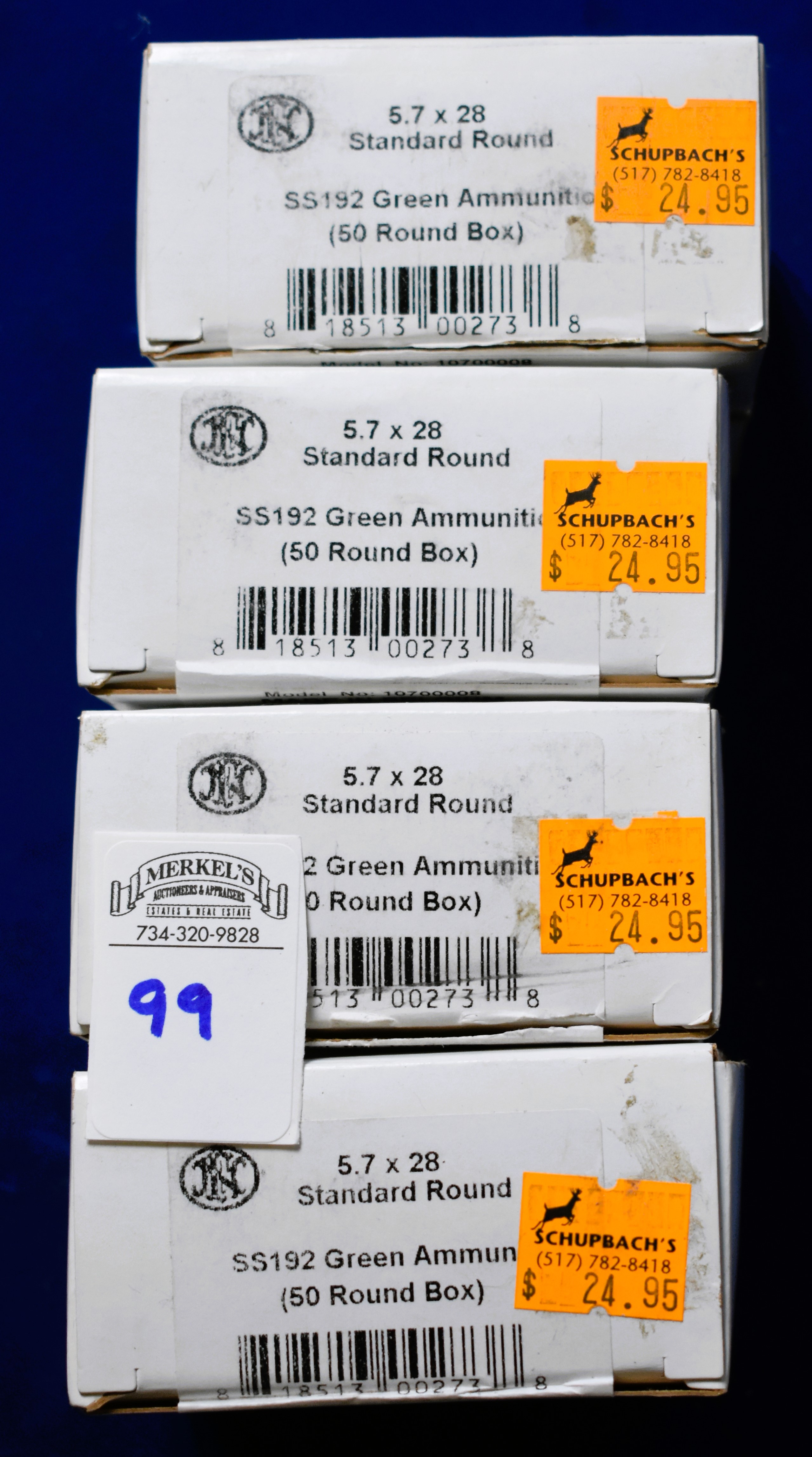 Factory New Old Stock -400 Rounds (8 Boxes) FNH USA 5.7 X 28 MM standard round green ammunition. Shipping ONLY UPS GROUND due to regulations.
